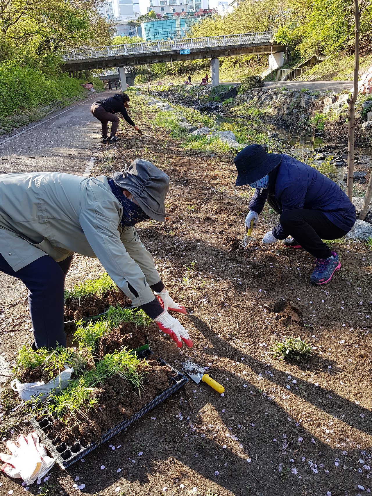 분당 천가에 코스모스 모종을 심기로 했는데