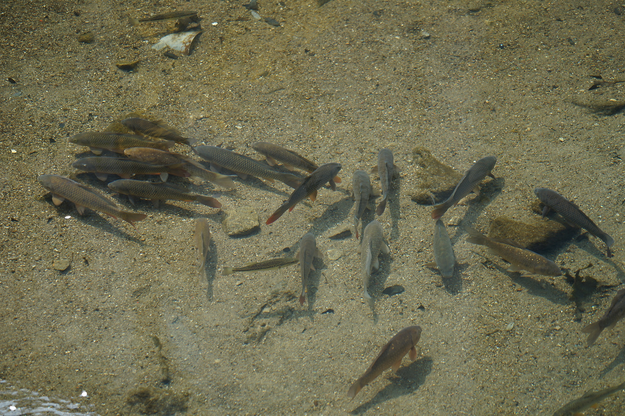 엄청 큰 잉어떼가 힘찬 물살 일으키더니