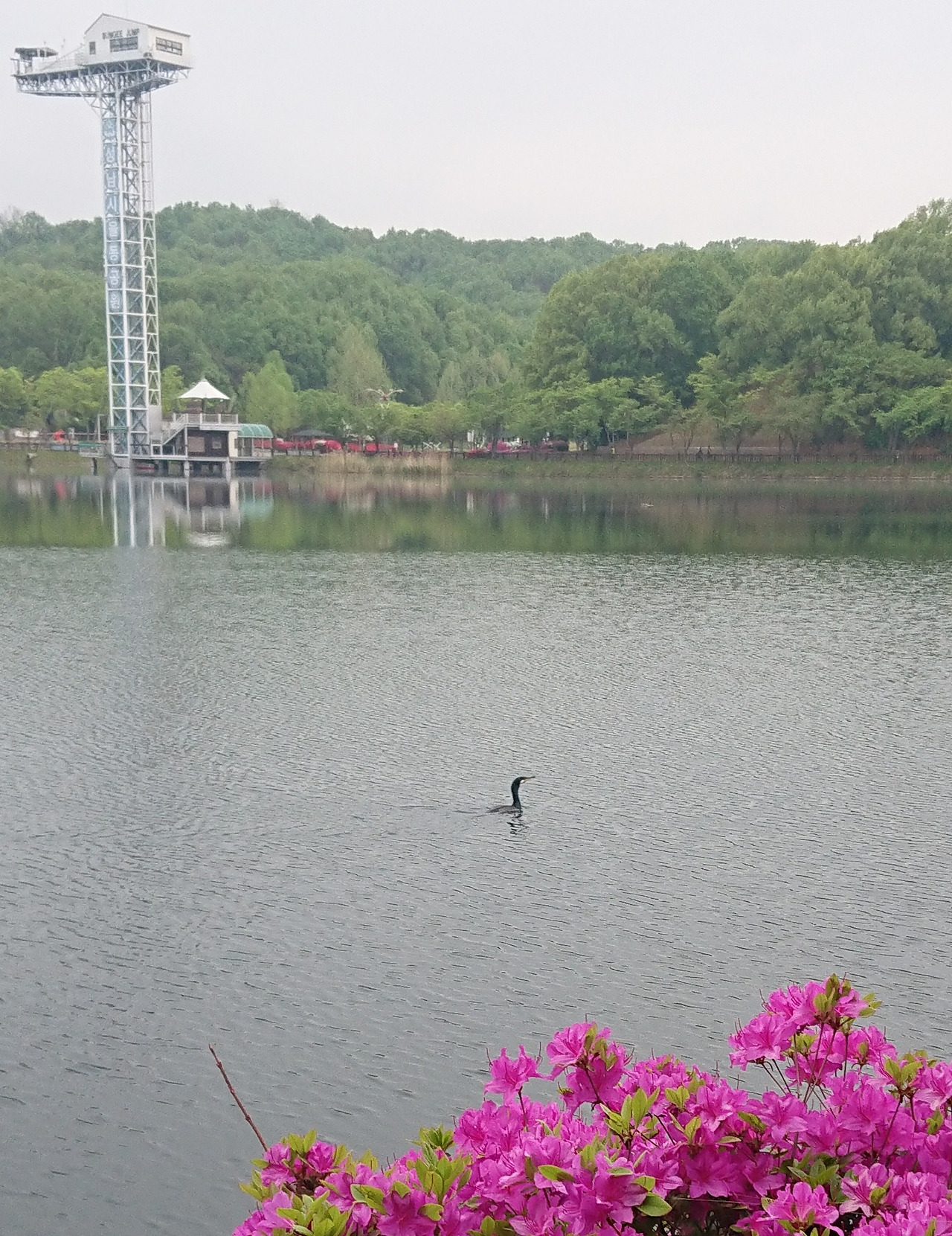 가마우지 한 마리 먹이사냥 자맥질하다가