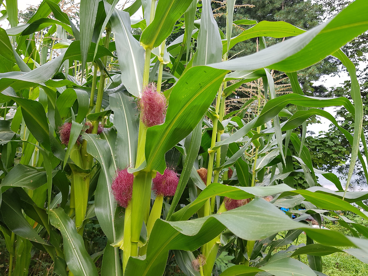 빨간 수염 늘어뜨린 옥수수 주렁주렁