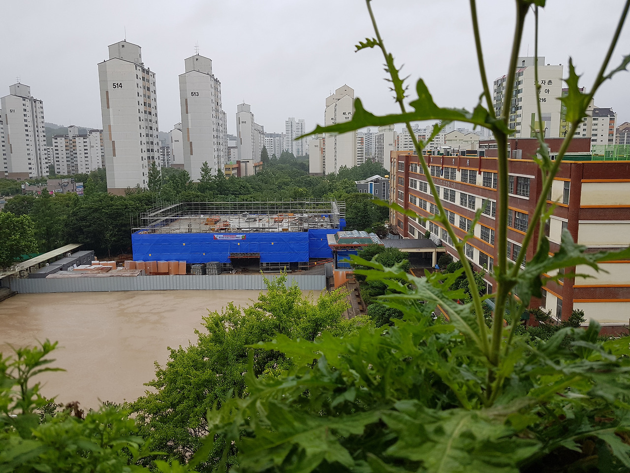 푸르른 숲의 뷰 막아서며 짓고 있는 건물