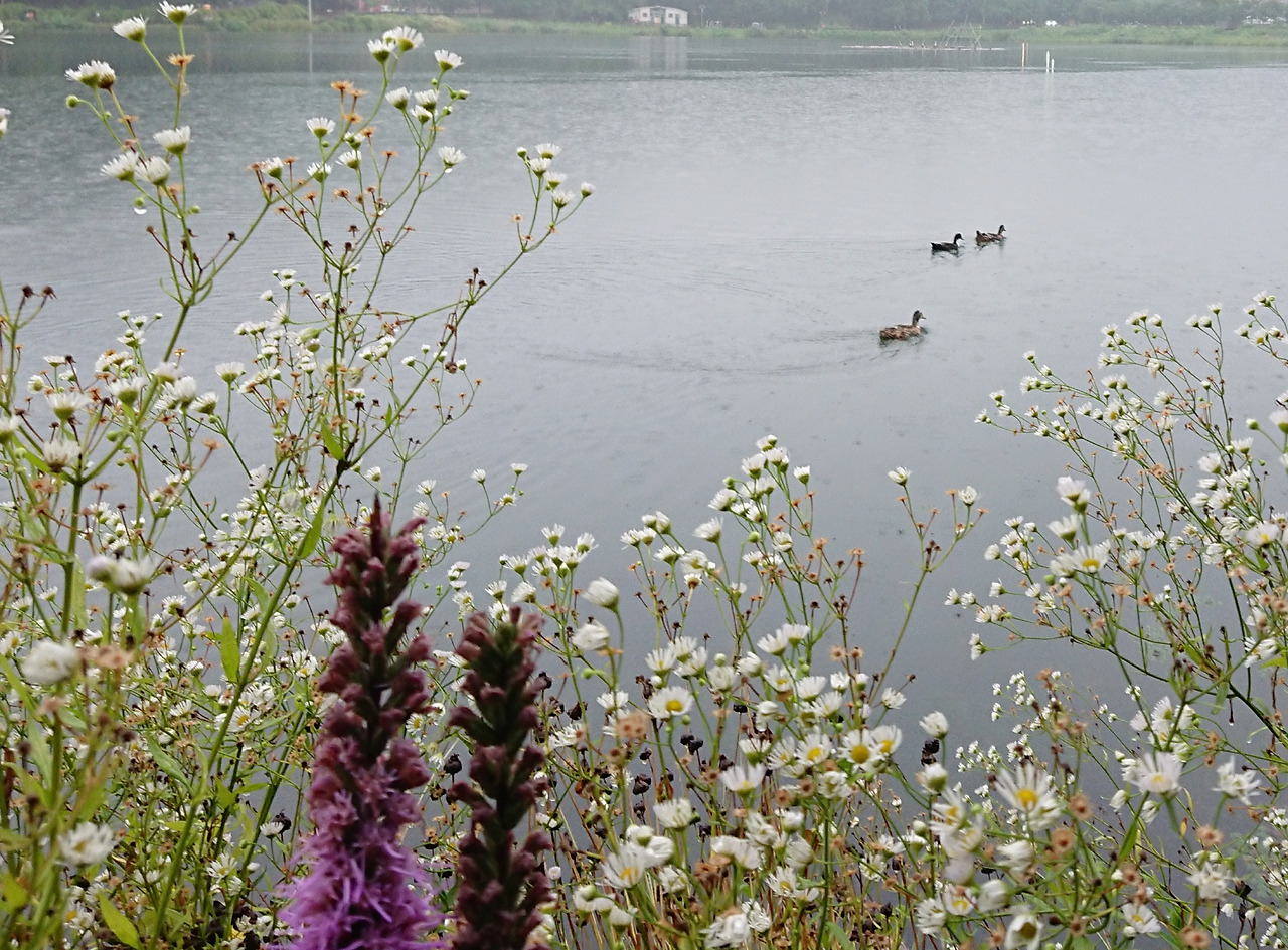 호수에 떨어지는 빗방울은