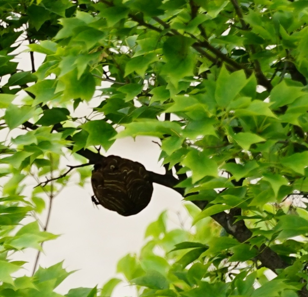 말벌들 내 걱정 알아차리고 행여 집을 파괴할까 봐 아무도 손 닿지 않고 나뭇가지 가늘어 올라 갈 수도 없는 아주 안전한 곳을 선택한 말벌의 지혜에 깜짝 놀랐다