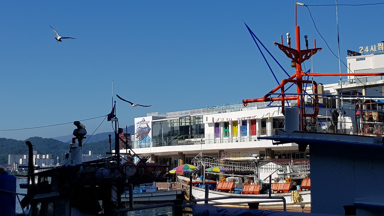 갯배가 지나는 청초호의 물길에는 속초항을 드나드는 다른 배들도 많았지만 서로 통행에 전혀 지장을 주지 않고 배려하며 운행되고 있는 모습이 신기하기도 했다