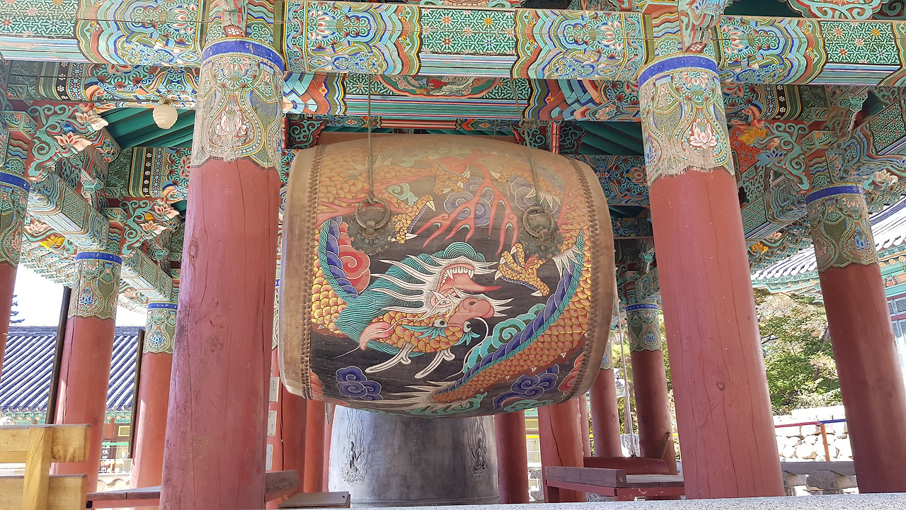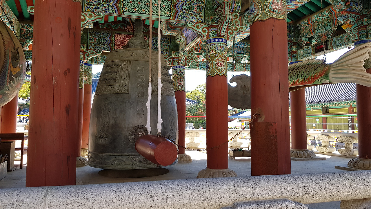 범종각 앞에는 바닥에 놀이처럼 보이는 선이 그어 저 있고 가장자리를 등으로 둘러 함부로 밟고 다니지 못하도록 한 것 같았는데 들어가 그림을 따라 걷다 보니 어쩌면 탑돌이처럼 마음을 정화하라는 이 곳의 의미를 조금은 알 것 같았다