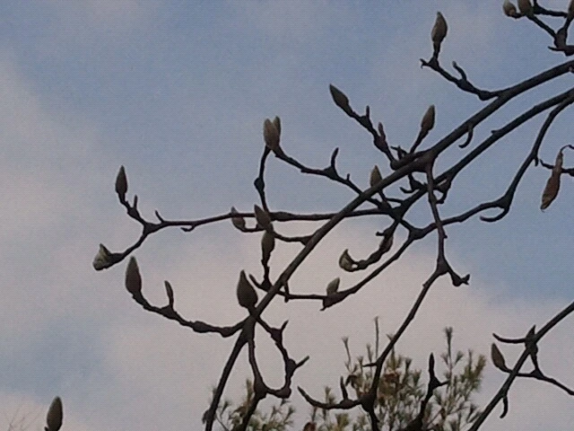 소공원의 목련이 꽃망울 안고