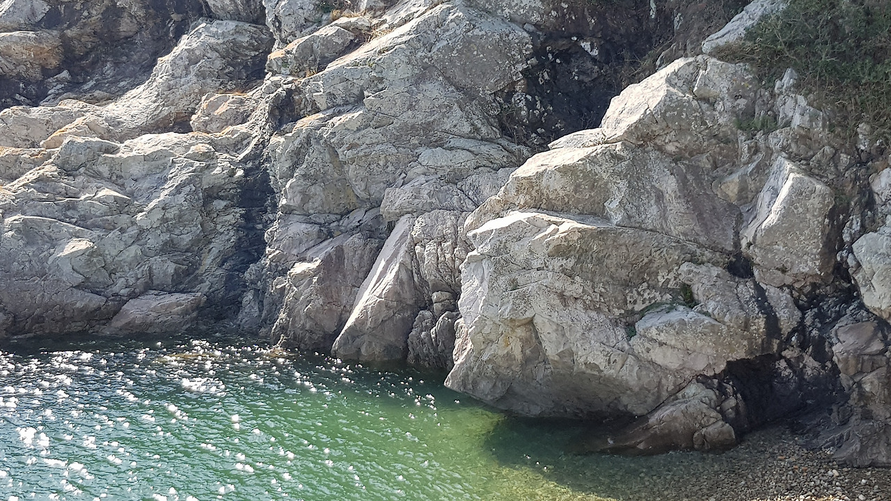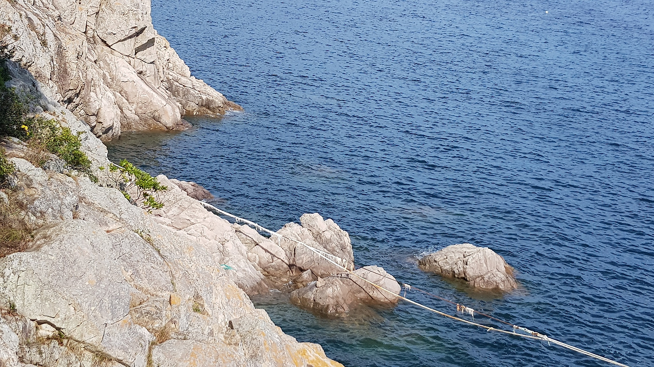 포기하지 않고 내려가자 끝은 분명 나오기 마련인데 그 끝에는 방범용 군 시설이 있고 벤치가 있어 너무 감사한 마음에 털썩 앉아 발밑의 바닷물들이 놀고 있는 모습이랑 맑은 물속에 세수하는 바위들이랑 푸르고 맑은 남해의 수평선도 바라보며 우리나라의 숨은 비경이 참 많기도 하다는 생각에 감탄이 절로 나왔다