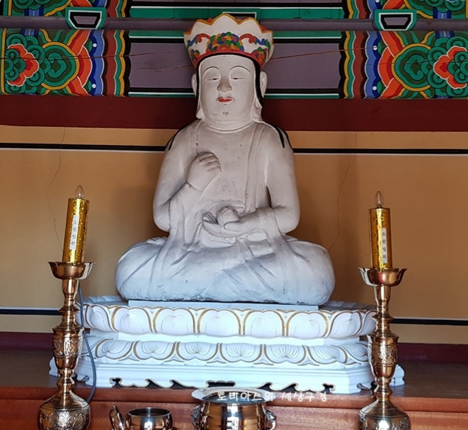 계단을 올라 대웅전 안에 모셔진 부처와 탱화를 보며 불교인이라면 조용히 대웅전의 부처 앞에 합장하며 고개를 숙일 것 같았다