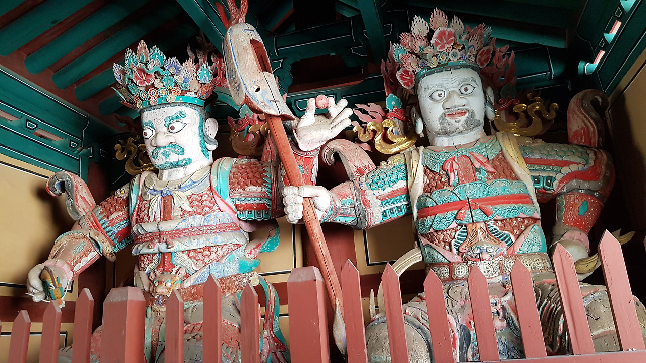 싱그러운 기운을 받으며 그리 멀지 않게 오르자 세심교가 있고 세심교 앞 천왕각에 들어서니 문 양옆에 무시무시한 사천왕이 그 모습과는 달리 반갑다며 어서 오라는 것 같다