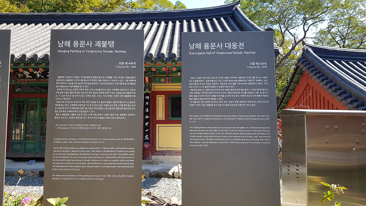 대웅전 옆쪽으로 작은 용화전이 있는데 용화전 앞에는 용문사의 역사와 시설들에 대한 안내판이 쭉 줄 맞추어 서있었는데 이곳을 살펴보고 문이 잠기지 않은 용화각을 열어 보았더니 하얀 부처 좌상이 모셔져 있었고 갑자기 무례한 해동을 하고 있는 느낌에 얼른 문을 닫았다