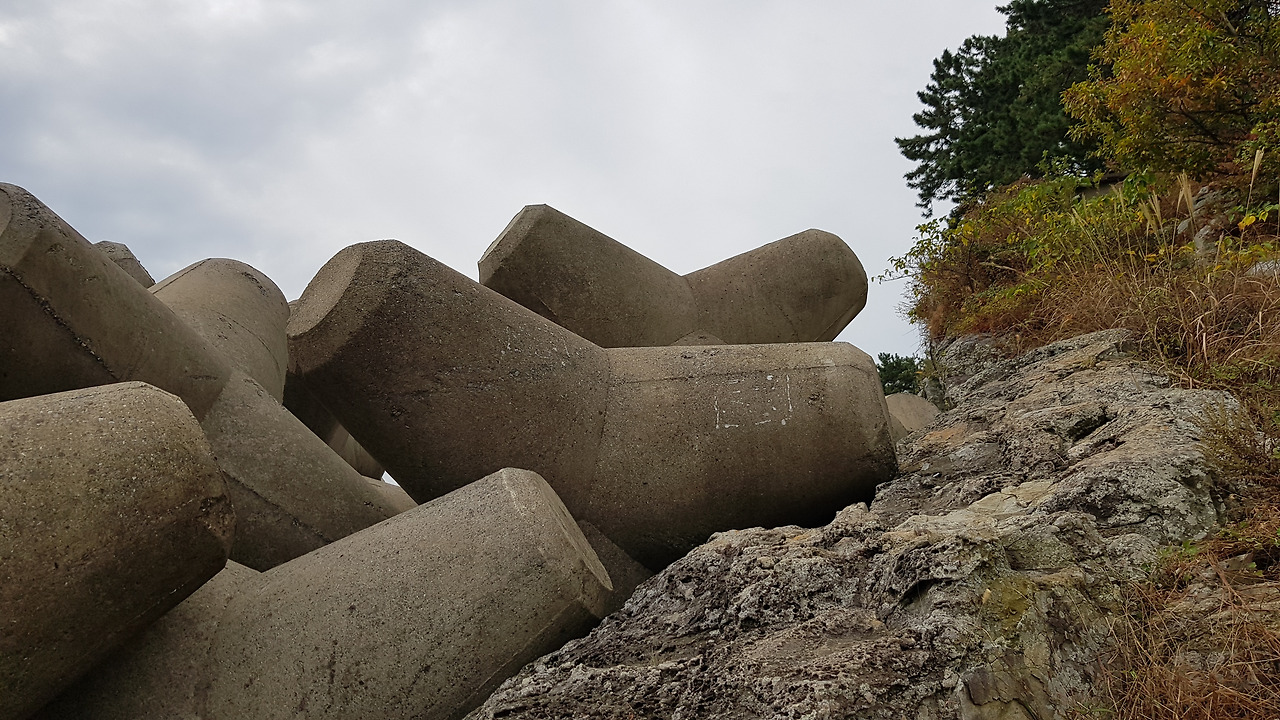 동네 앞 방파제에 걸터앉아서