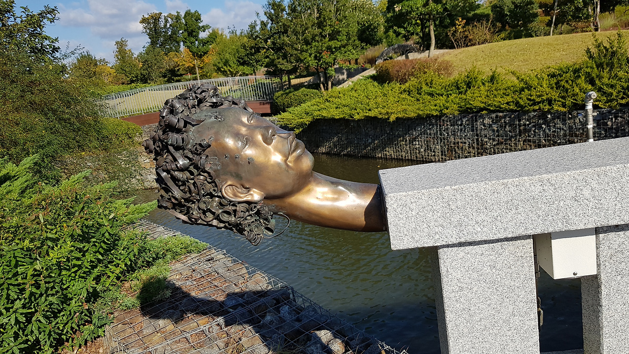호수안 다리를 완주해 보고 입산이 가능한 똥산을 다 돌아보고 내려와 비치된 작품들을 감상하는데 다리 끝에 얼굴이 달랑 달려있어 깜짝 놀라 살펴보니 다른쪽 끝에 발가락이 붙어 있는 모양을 보고는 아ㅡ누워 쉬는 사람이 소재로구나라는 생각에이곳에 왔으니 잠시라도 근심걱정 내려놓고 여유를 가지고 쉬어 가라는 마음의 소리를 듣는다