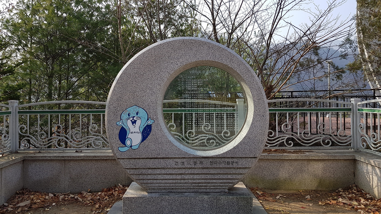 평화의 댐에 도착하자 제일 먼저 눈에 들어오는 것은 평화의 댐이라는 돌 표지석과 전면에 여러 조형물들이 어서 오라 반겨주고 있었다
