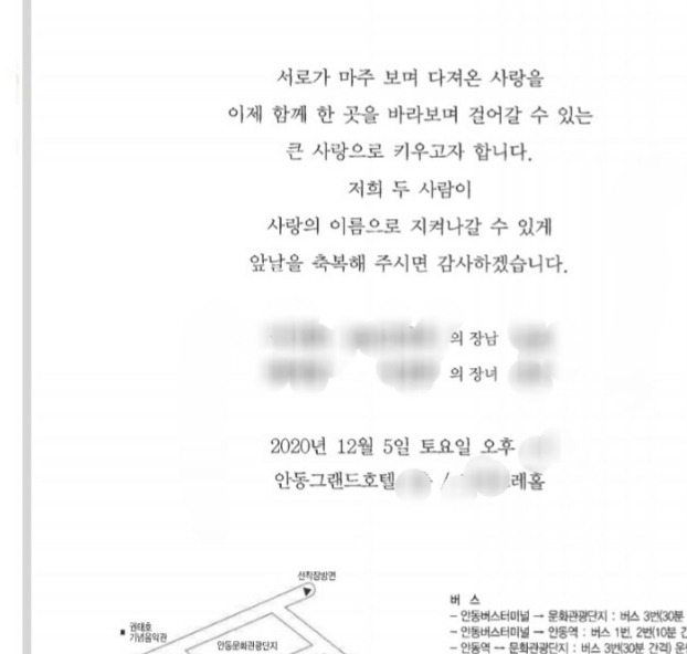 12월 20일 안동에서 아들 장가보낸다며 지인이 보낸 것이었다