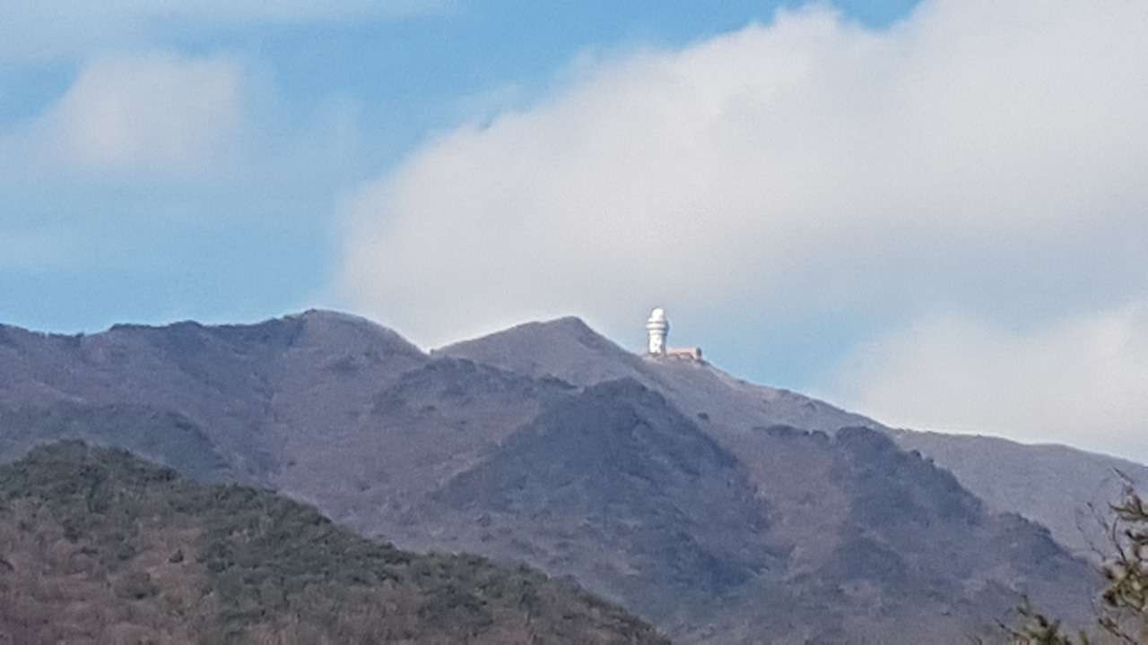 산꼭대기에 올라선 하얀 건물