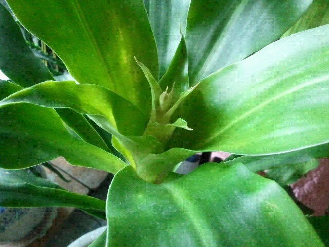 곁가지에 올라온 행운목 가지