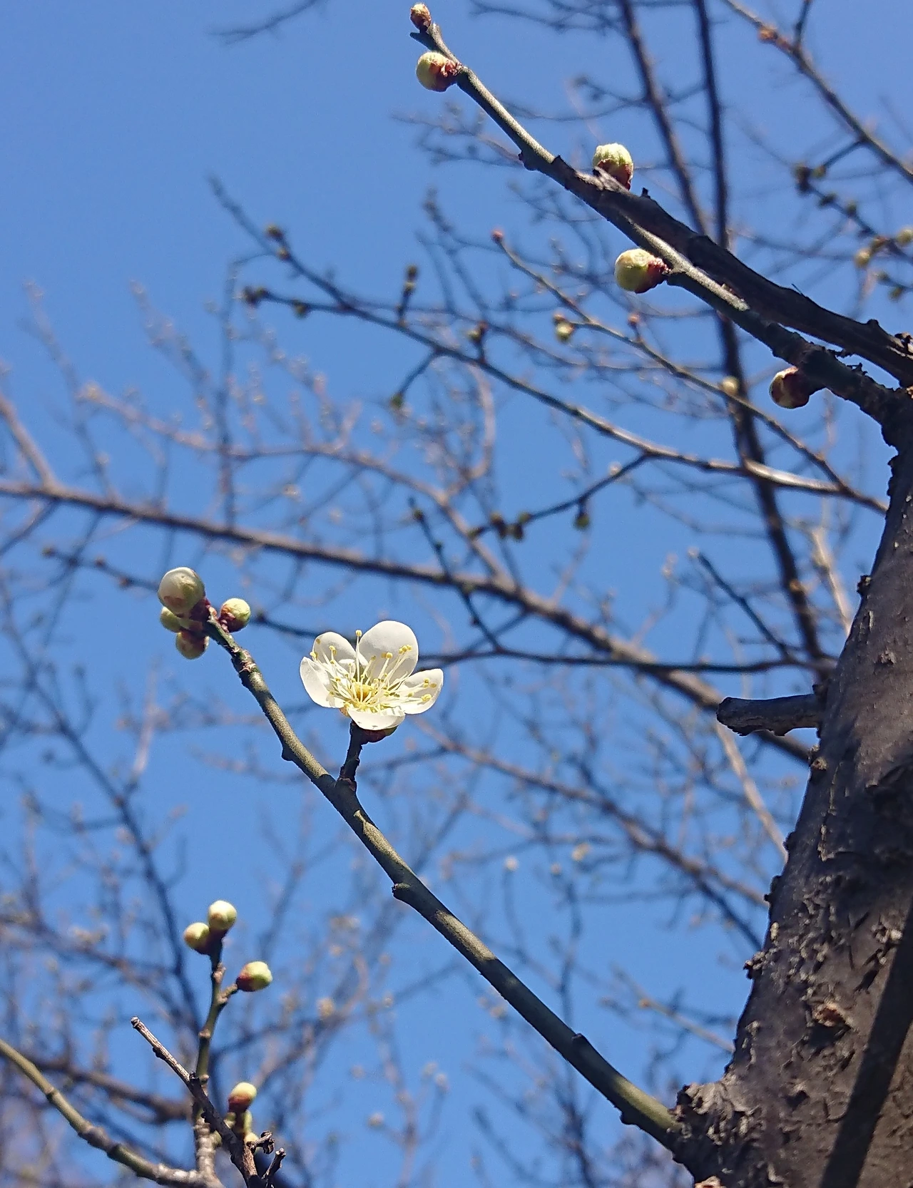 공원길 화단에 연분홍 매화