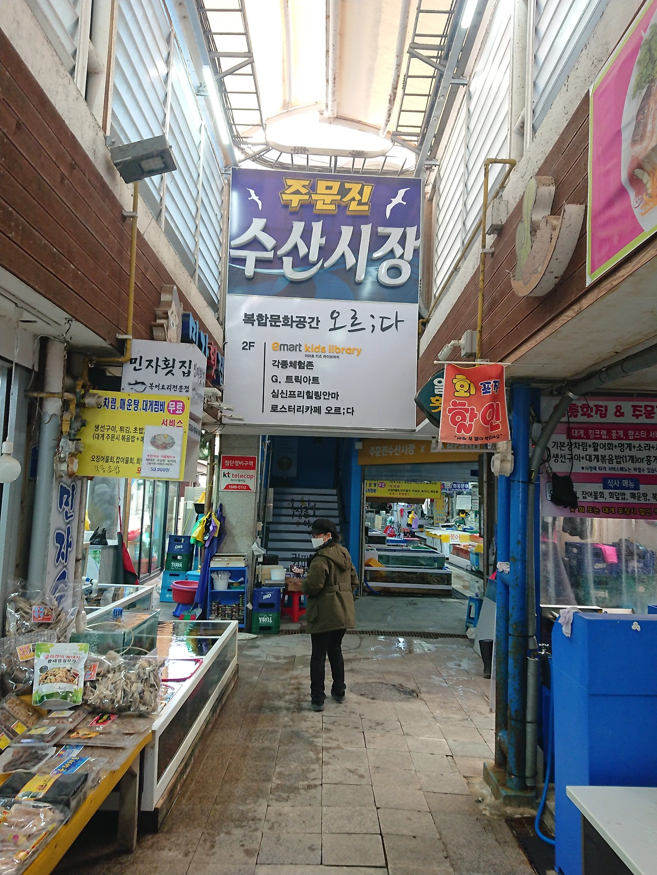 시장에는 여러 종류의 어물전이 많았는데 장사 준비를 하는 상인들은 별로 보이지 않았으며 우리가 조심스레 돌고 있는 것을 보신 입구 쪽의 건어물 가게 상인분께서 주문진 좌판 시장도 길 건너에 있으니 꼭 가보라고