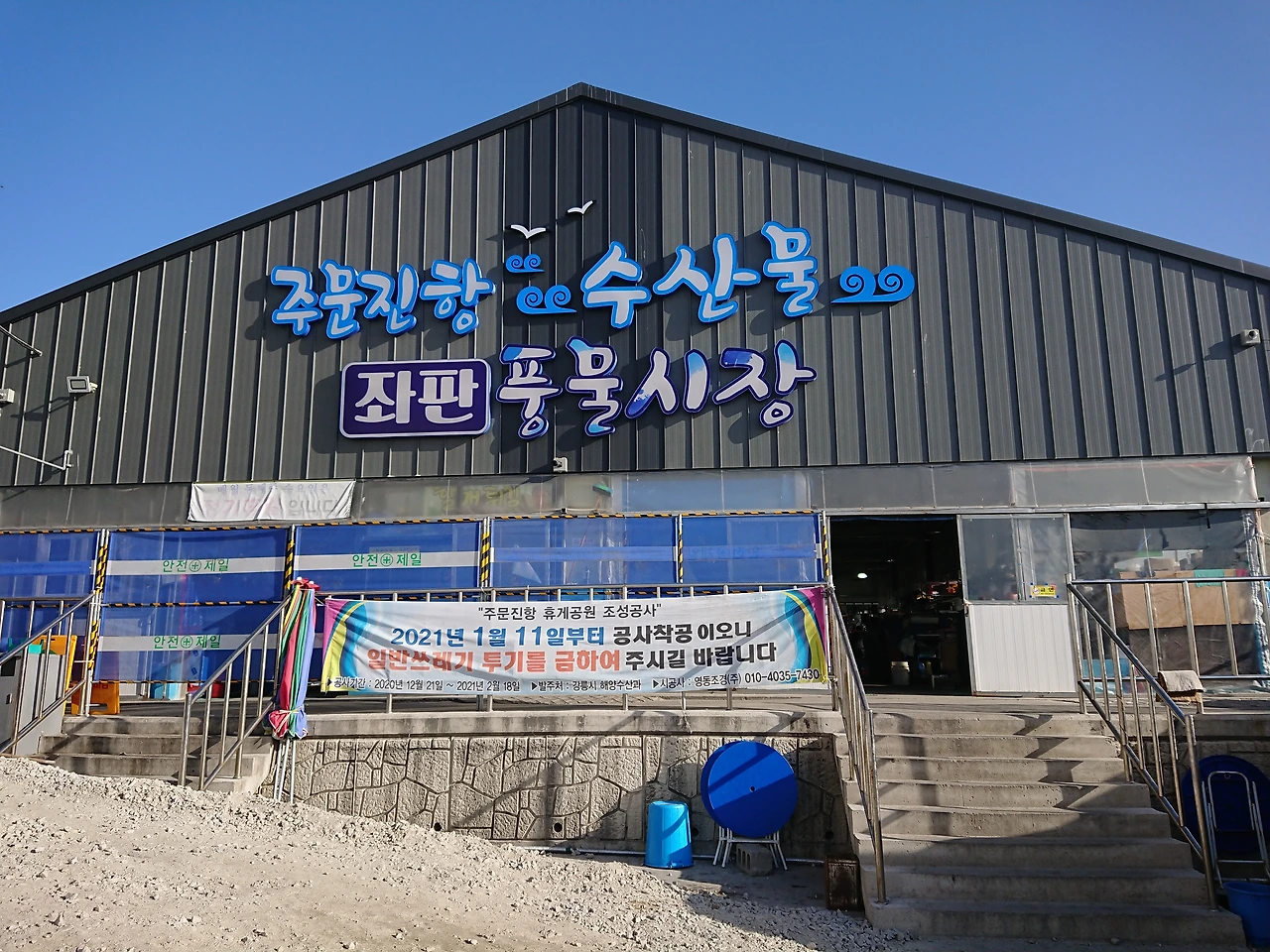 주문진 시장을 돌아보고 나와 주차장 쪽으로 길을 건너 오니 길 안쪽 바닷가에 주문진항 수산시장 좌판 풍물시장이라는 간판이 보였다