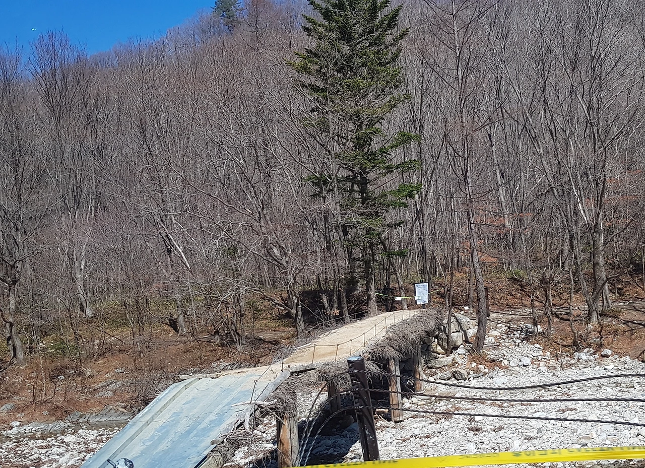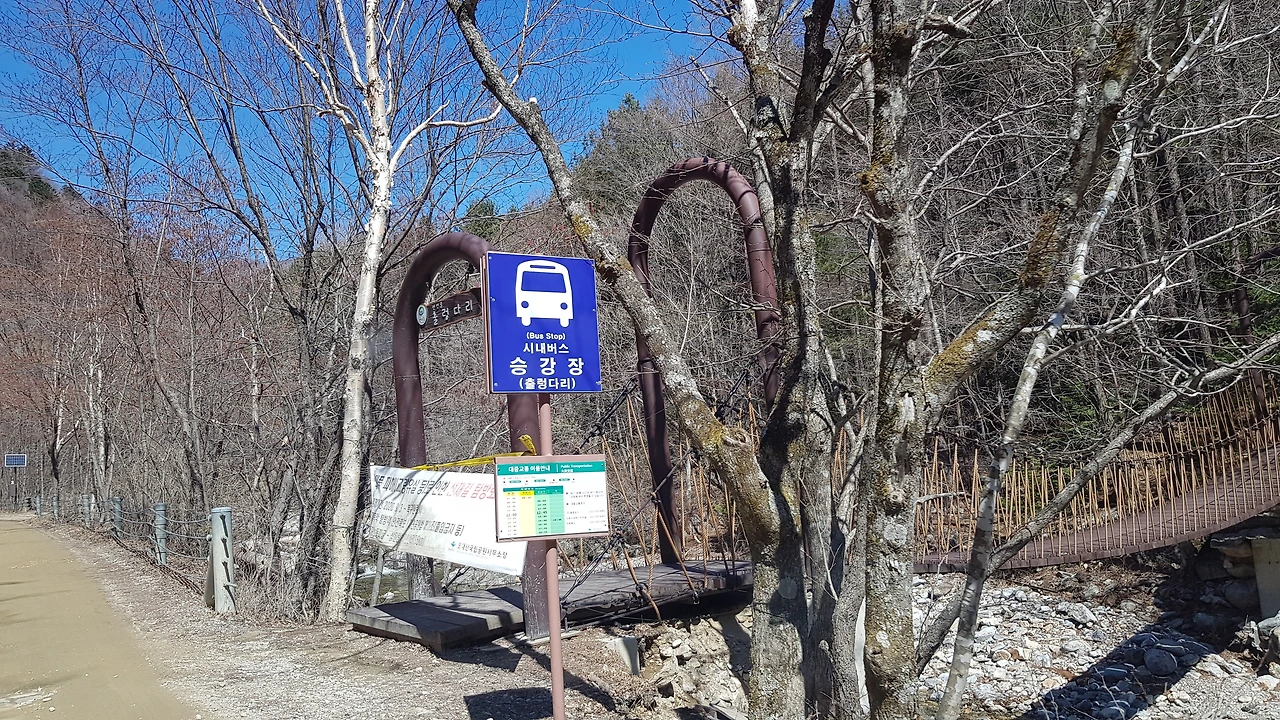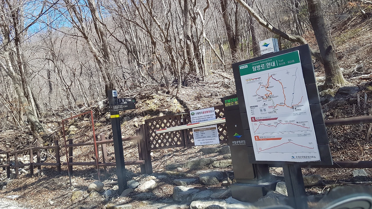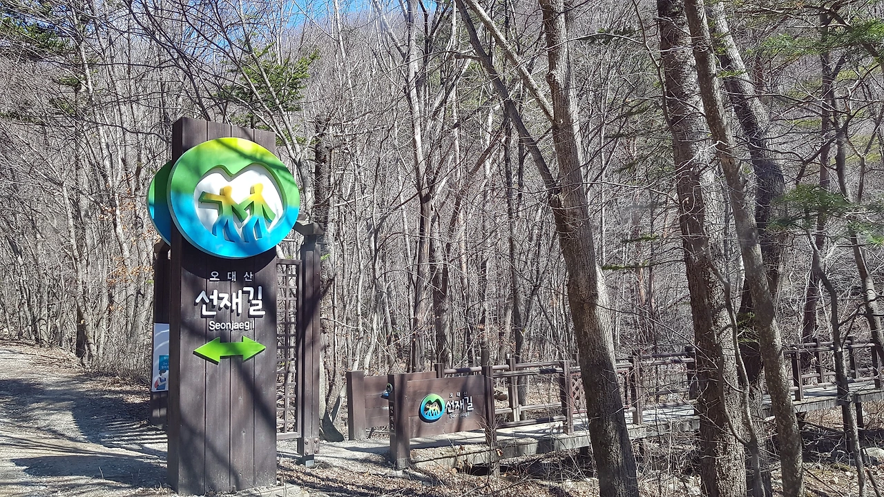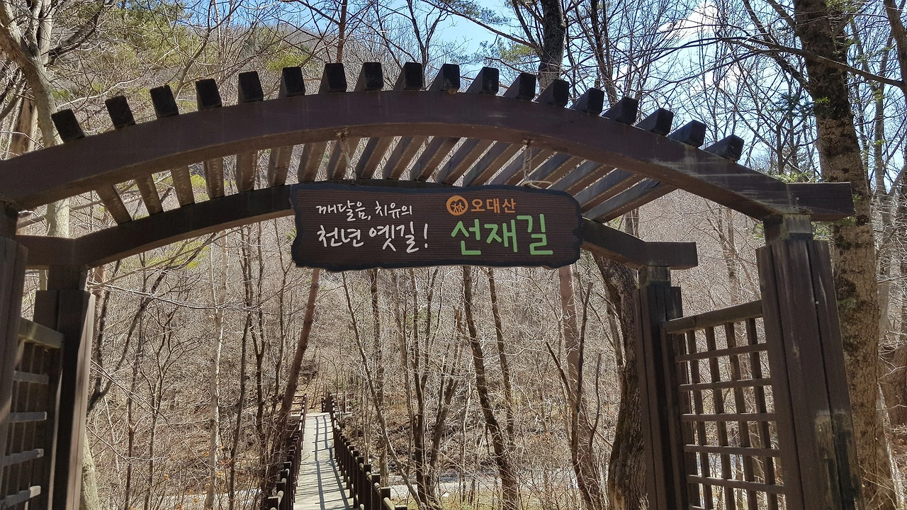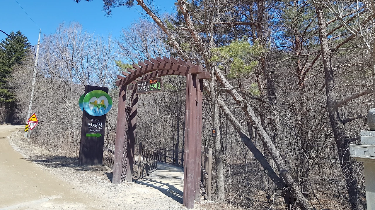 길을 사이에 두고 흐르는 물이 너무도 맑은 계곡 건너로 나무 데크가 설치된 곳이 여러 곳이 있었고 섶다리, 시멘트 다리, 나무다리를 놓아 계곡 건너 선재길로 들어설 수 있도록 안내되고 있었다