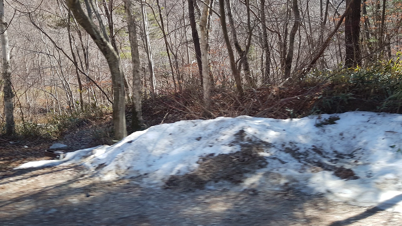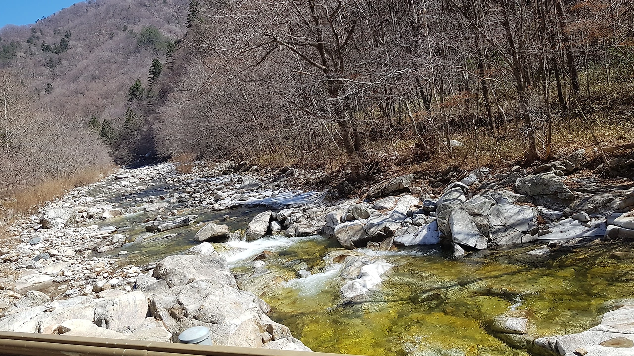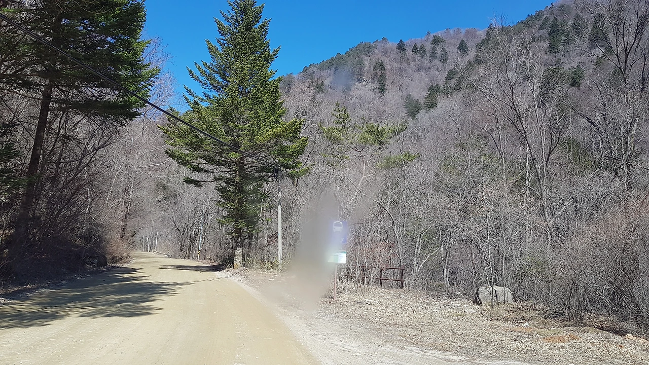 3월 하순인데도 길가에 또는 숲에 하얀 눈이 있어 이곳은 아직 겨울이라고 친절하게 알려주는 듯했으며 이 비포장 도로를 달리며 옛 추억들이 떠올라 즐겁고 행복한 시간이 되었다