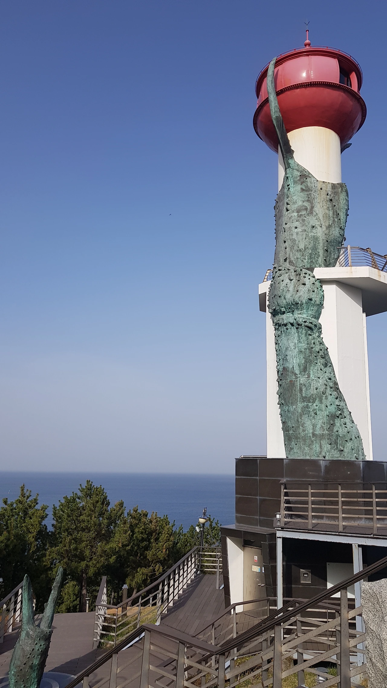 푸른 대게 집게발 등대 감싸고