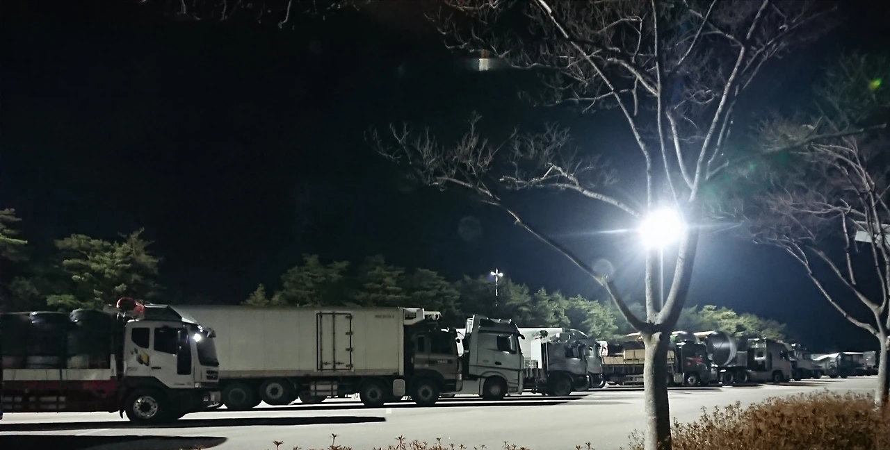 고속도로를 달릴 때는 사뭇 몸을 움츠리게 하는 두려운 대형트럭들인데 어두운 밤늦은 시간에도 목적지가 아직 멀어 휴게소에 차를 세우고 쪽잠을 청하는 저 기사님들은 누군가의 아버지, 남편, 그리고 누군가의 귀한 아들들 아니신가