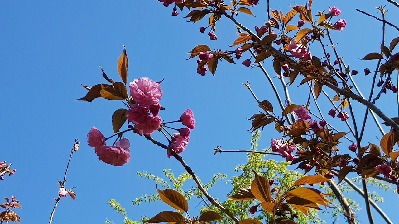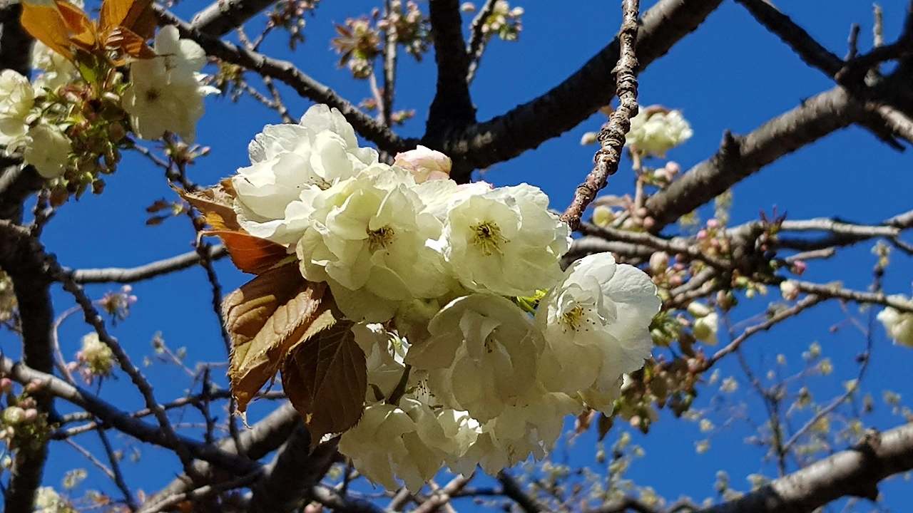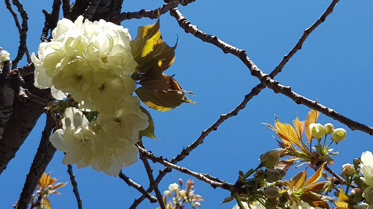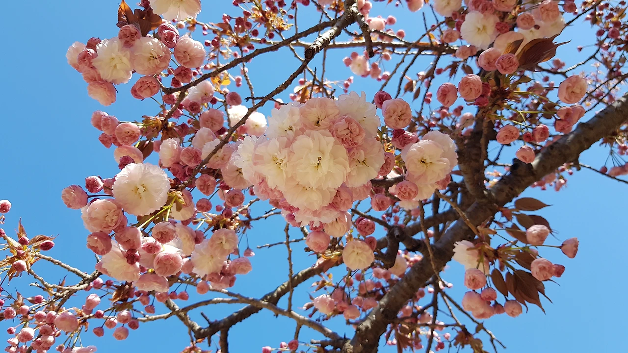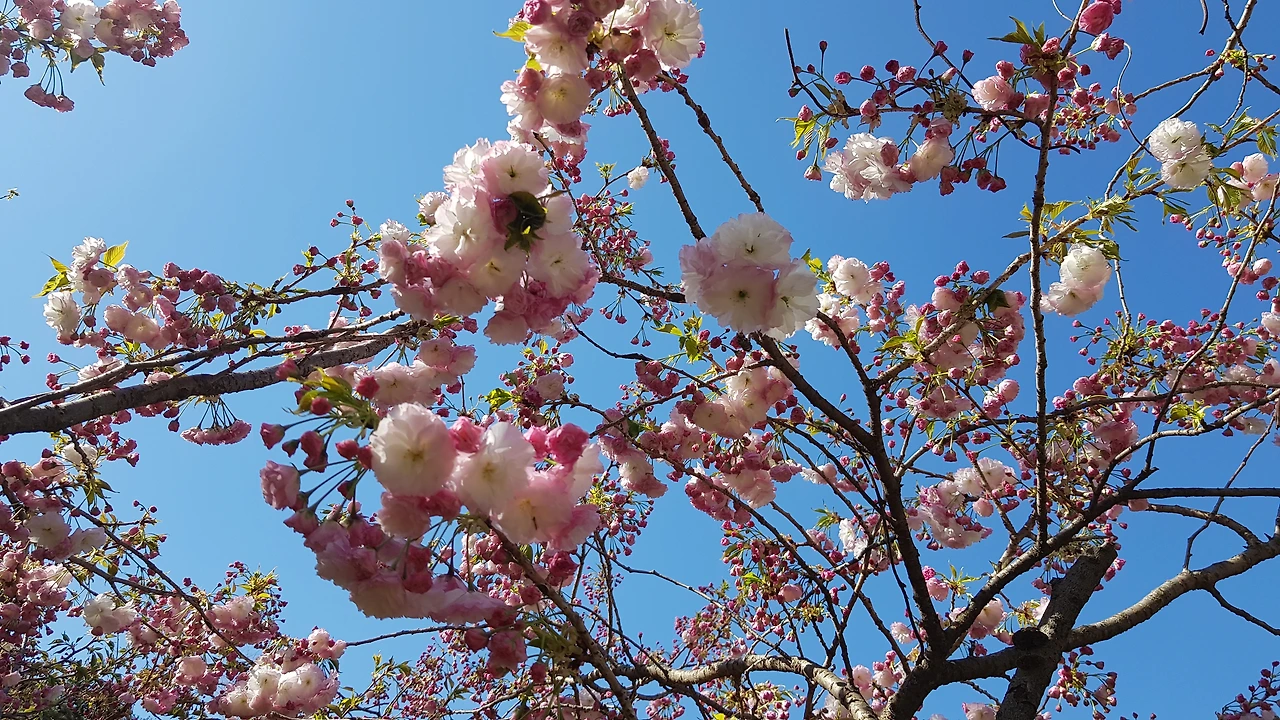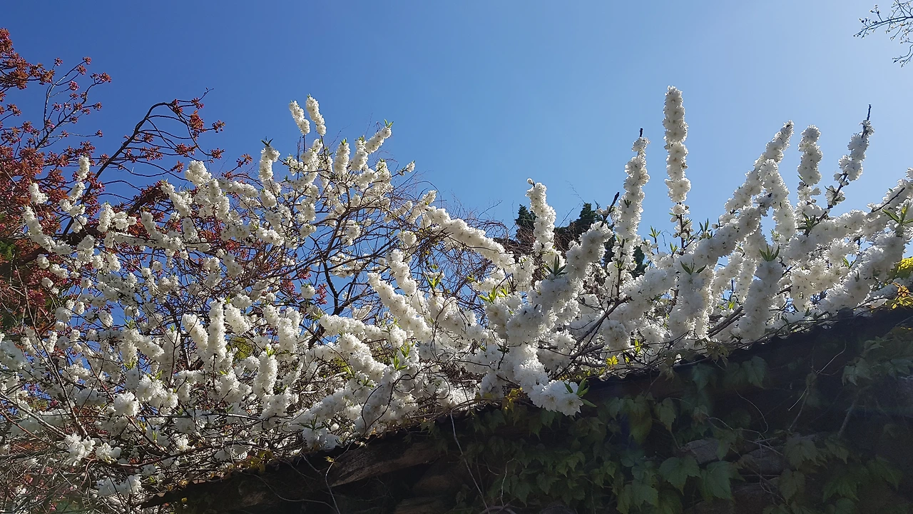 푸르스름 청 왕벚꽃의 신비로운 자태에 봄날의 하늘도 들여다 보고 연분홍 왕벚꽃의 방싯거림에 봄바람 반기며 살랑거리고 진분홍 왕벚꽃 고운 미소에 윙윙 꿀벌의 날갯짓 힘차다