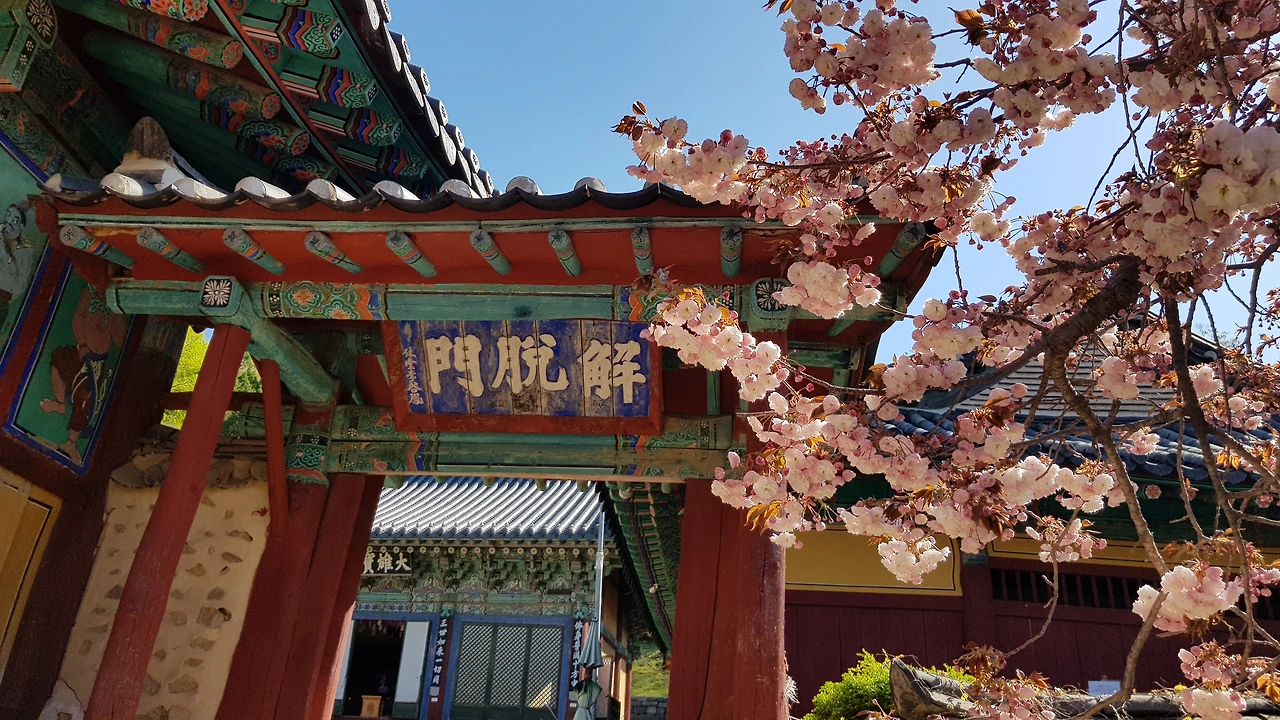 청 왕벚꽃 그리고 연분홍 진분홍 왕벚꽃들과 아쉬운 작별을 하며 개심사를 나왔다