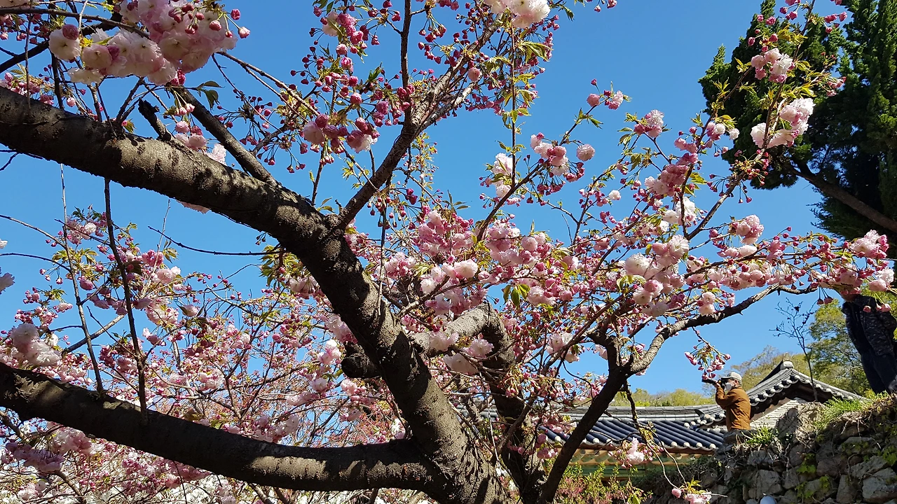 청 왕벚꽃, 연분홍 왕벚꽃, 진분홍 왕벚꽃이 활짝 필 때면 사진작가 행렬이 줄을 선다한다