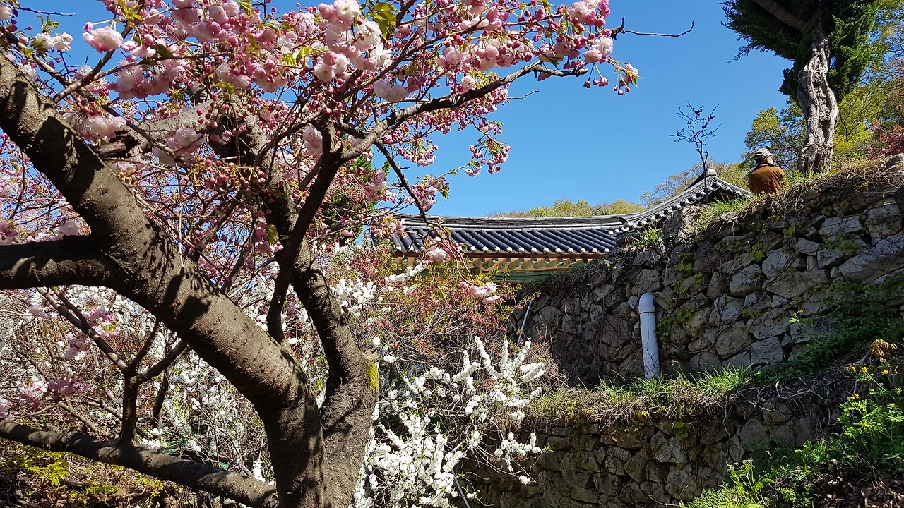 꽃들은 개심사를 빛나게 하고 봄날은 꽃들을 환영하는데 작가들 눈빛은 반짝이며 이 멋진 봄날의 축복을 즐기고