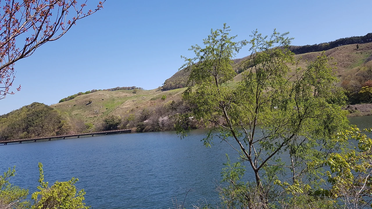 목장의 터인 푸른 민둥산을 두르고 이루어진 산속의 저수지는 선녀들의 여름 휴가지인가 싶도록 그 자연경관이 아름다워 차를 멈추고 감상하며 내 손길은 벌써 사진 속에 담고 있었다.