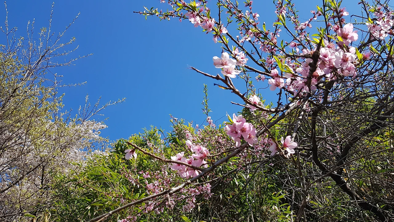 숲 도로를 거의 내려올 즈음 화사한 복사꽃이 잘 가라는 인사를 보내는