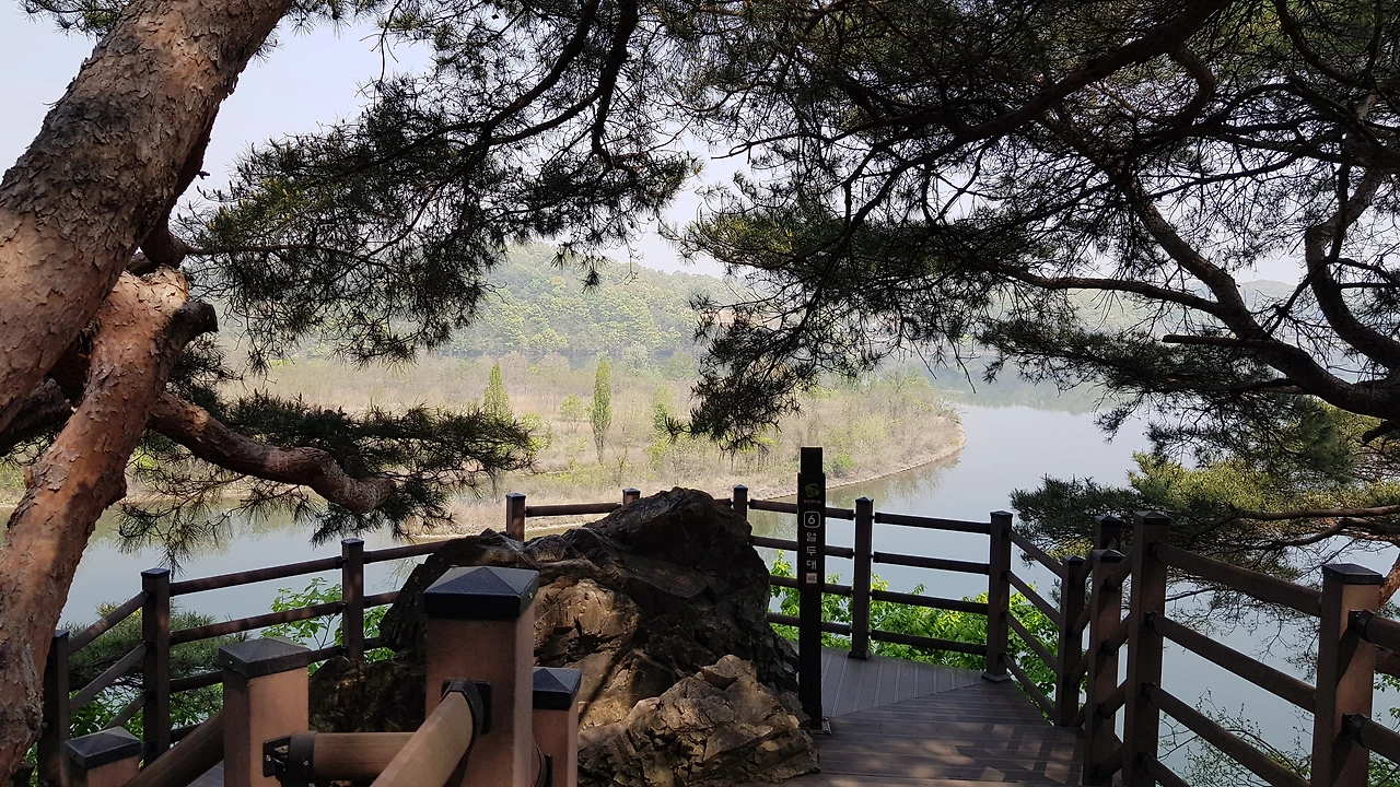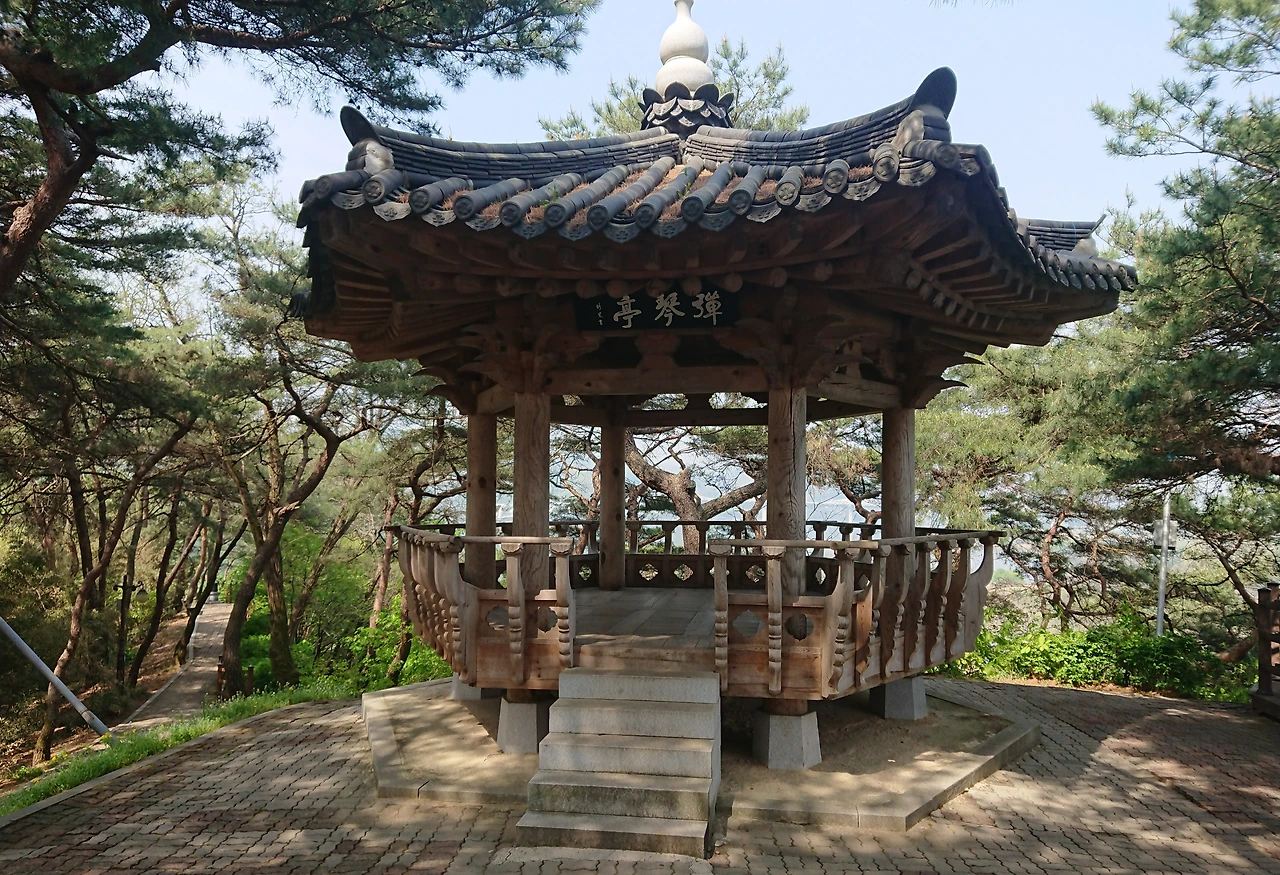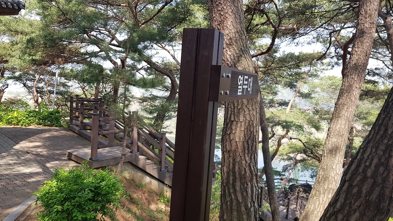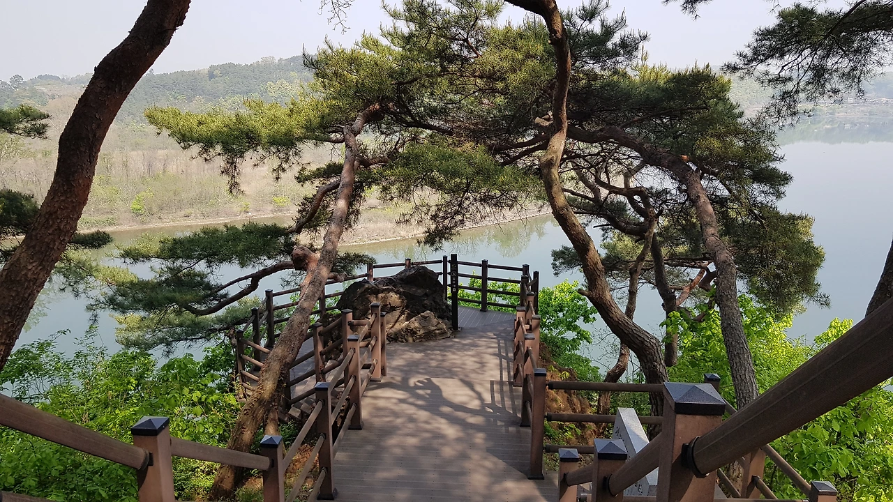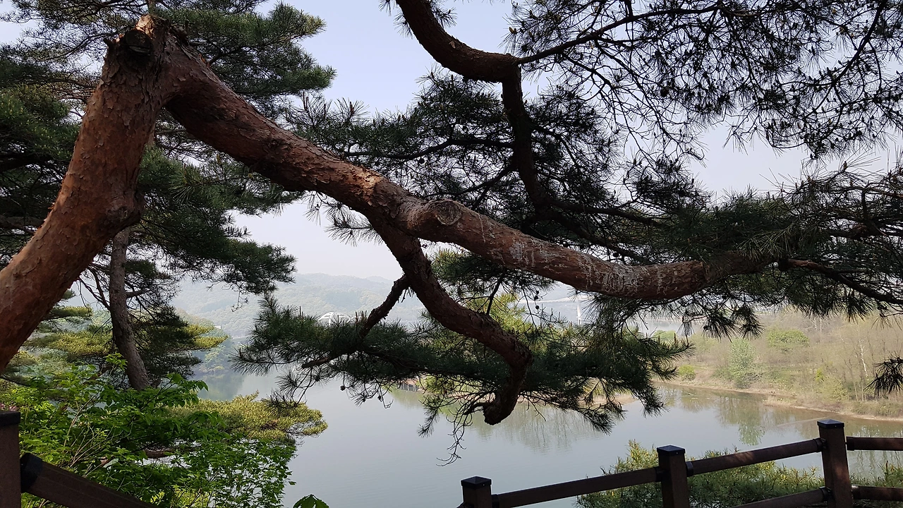 그리 높지 않은 언덕으로향하는 계단을 오르니 바람결 따라 이리저리 휘늘어진 적송은 보는 이의 눈을 반짝이게 하고 우뚝 선 비석을 지나 날아갈 듯 서있는 탄금정은 나이 든 소나무들과 어우러져 그 풍경이 감탄을 자아냈다.