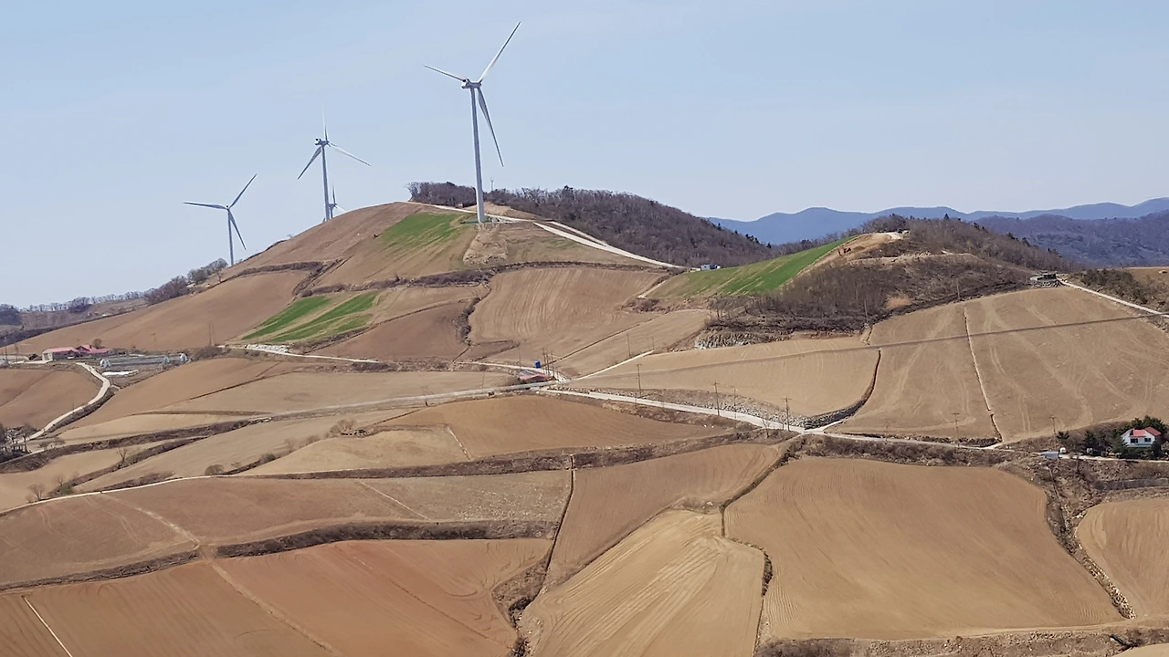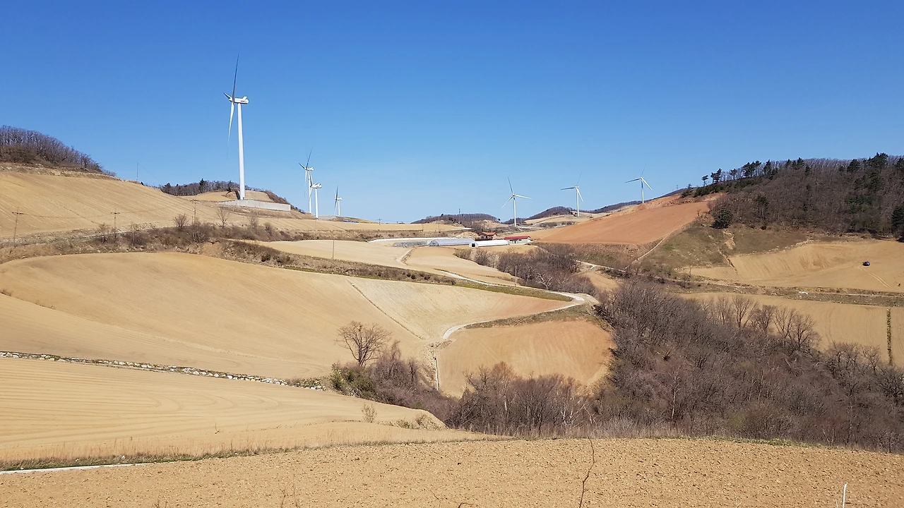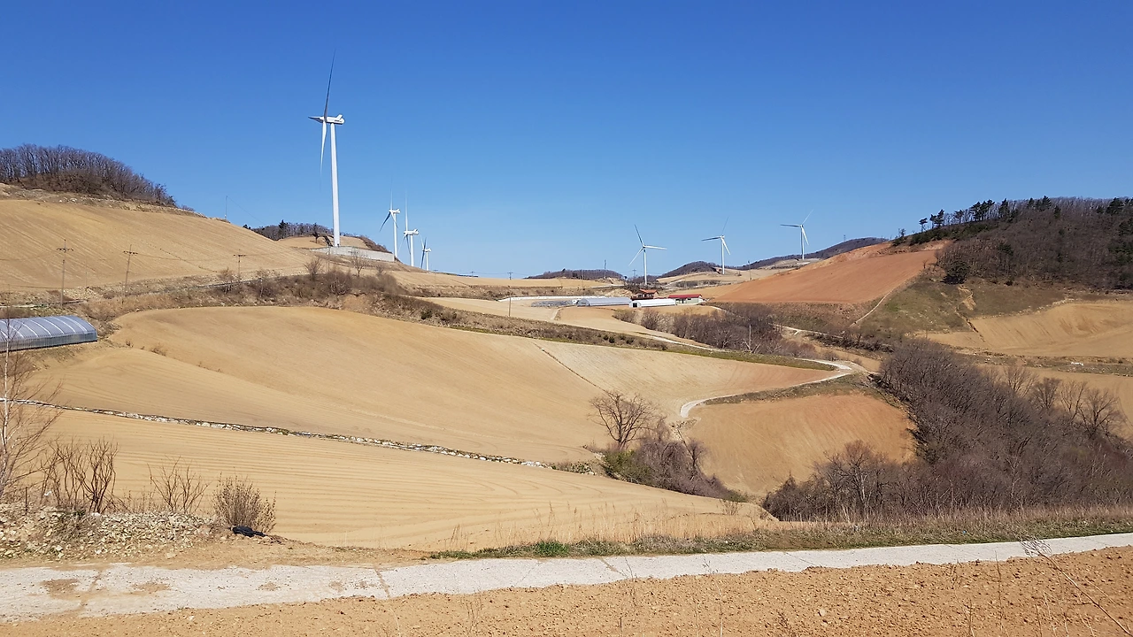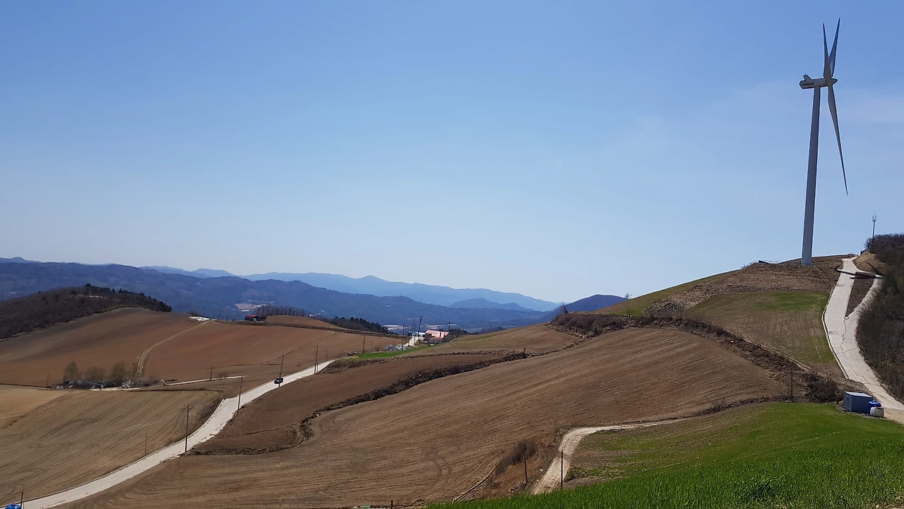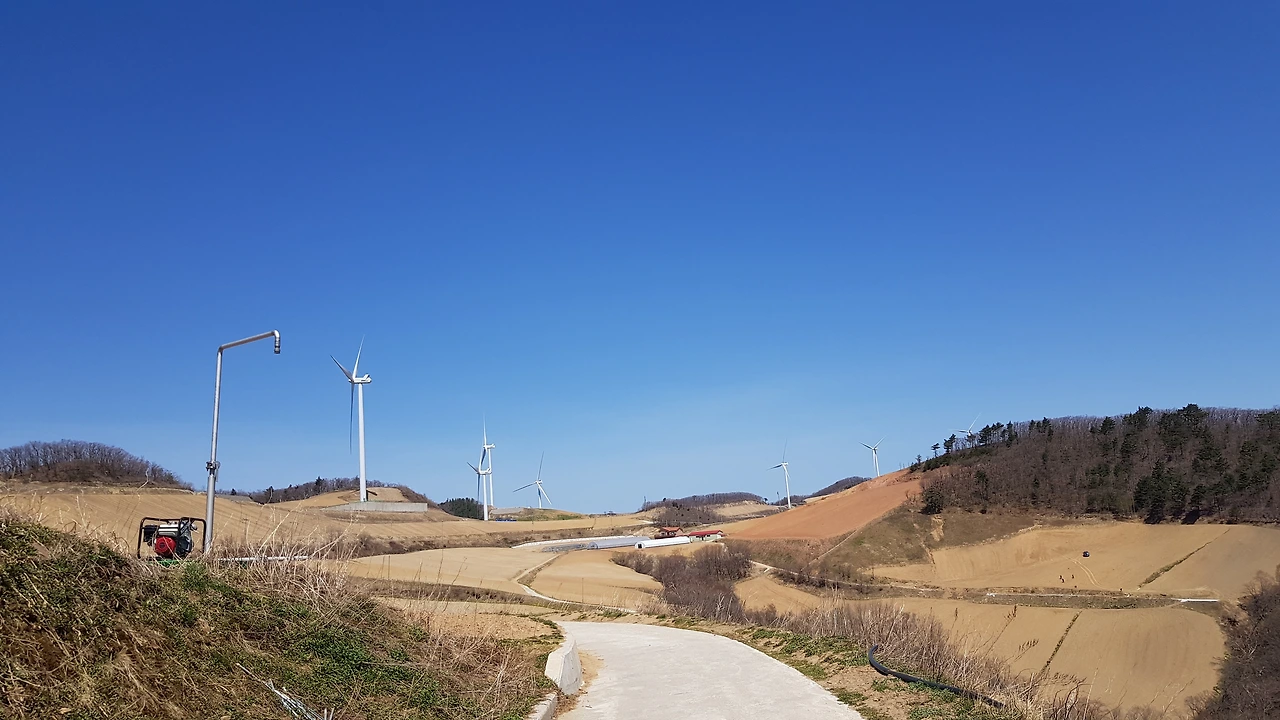 강원도 왕산의 산길을 따라 올라 숲길의 정취에 빠져들 즈음 산 위에 우뚝우뚝 서서 바람개비를 돌리고 있는 풍력발전기들이 서로 힘자랑을 하고 있는 모습을 올려다보며 목적지에 도착했다