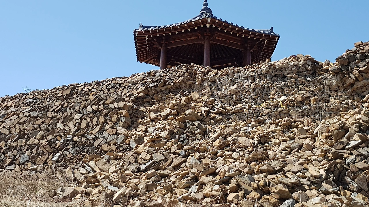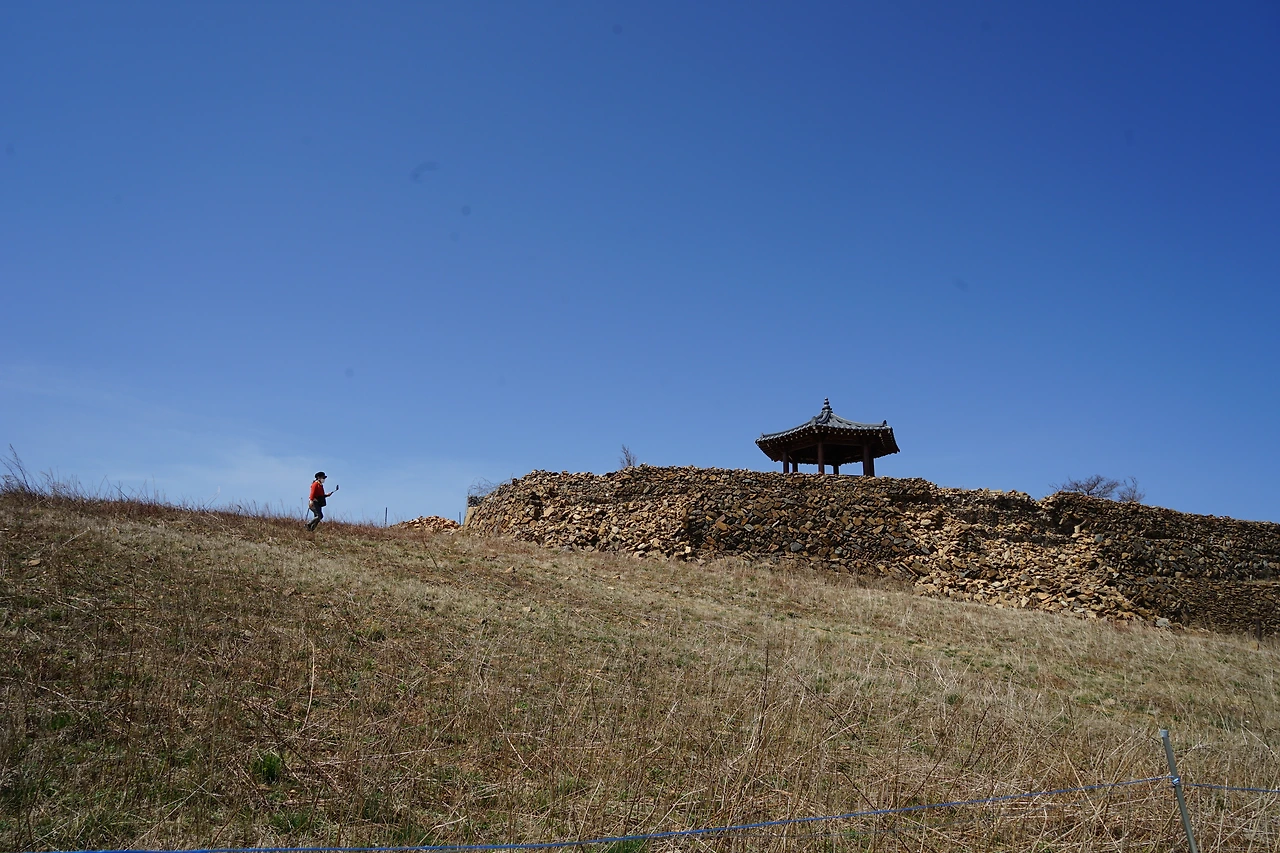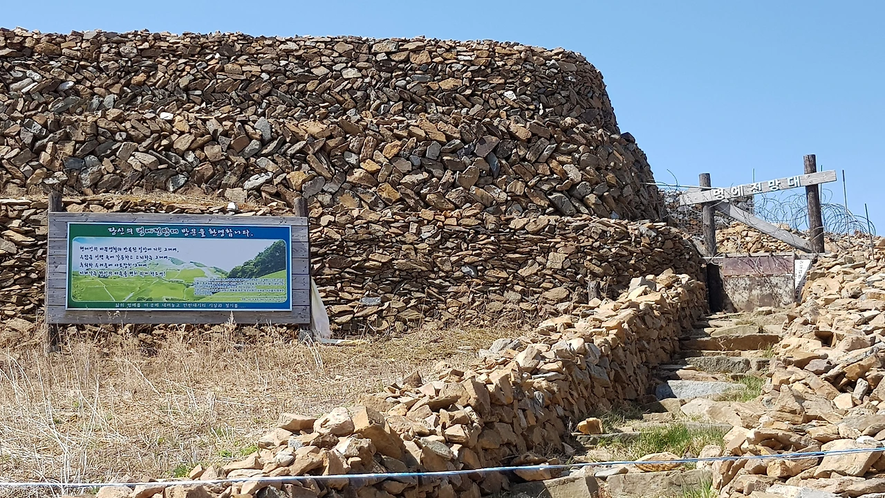 주변을 돌아보니 전망대 둘레에 쌓아놓은 돌담이 무너져 내리고 있었으며 돌담을 쌓은 속내가 드러나 보였는데 철망에 돌을 넣어 올려 쌓은 것으로 이갑용 처사가 보았으면 탄식을 했을 것 같았다