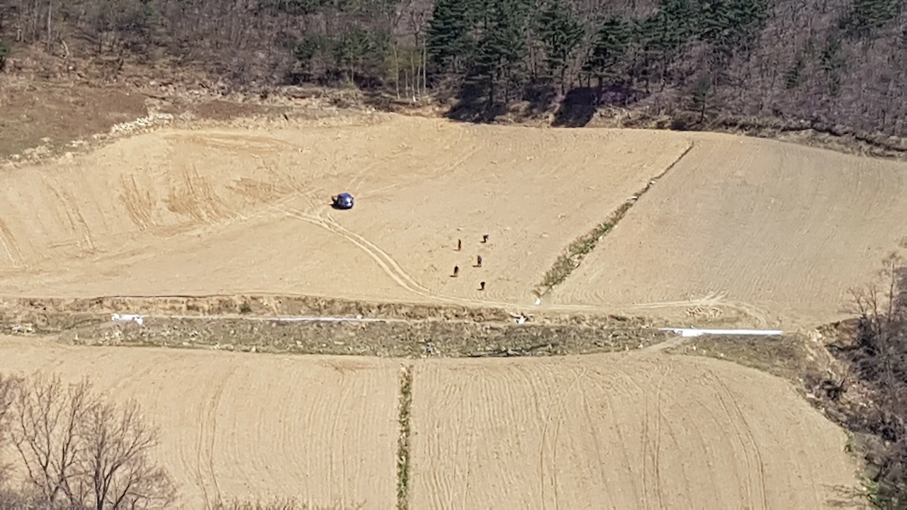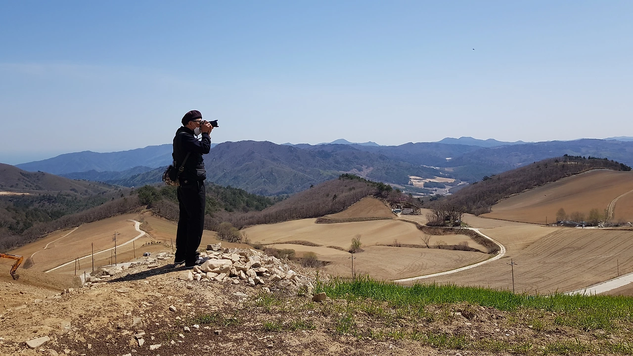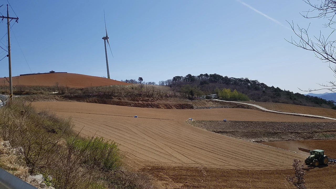 어쩌랴 차량 금지인데 그래서 천천히 오르고 있는데 밭에서 트랙터로 밭갈이를 하고 계시는 분도 있고 길 위쪽 산기슭에서 밭을 넓히는지 아님 안전 공사를 하시는지 일하고 계시는 분들도 보였다