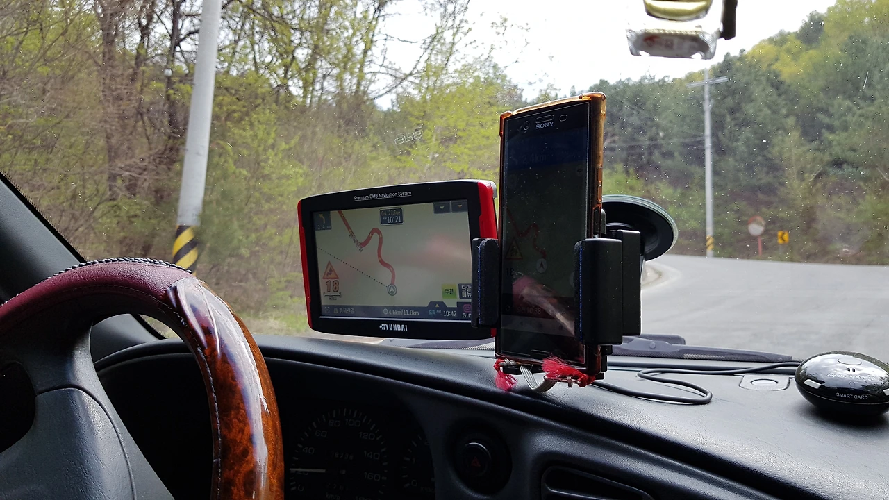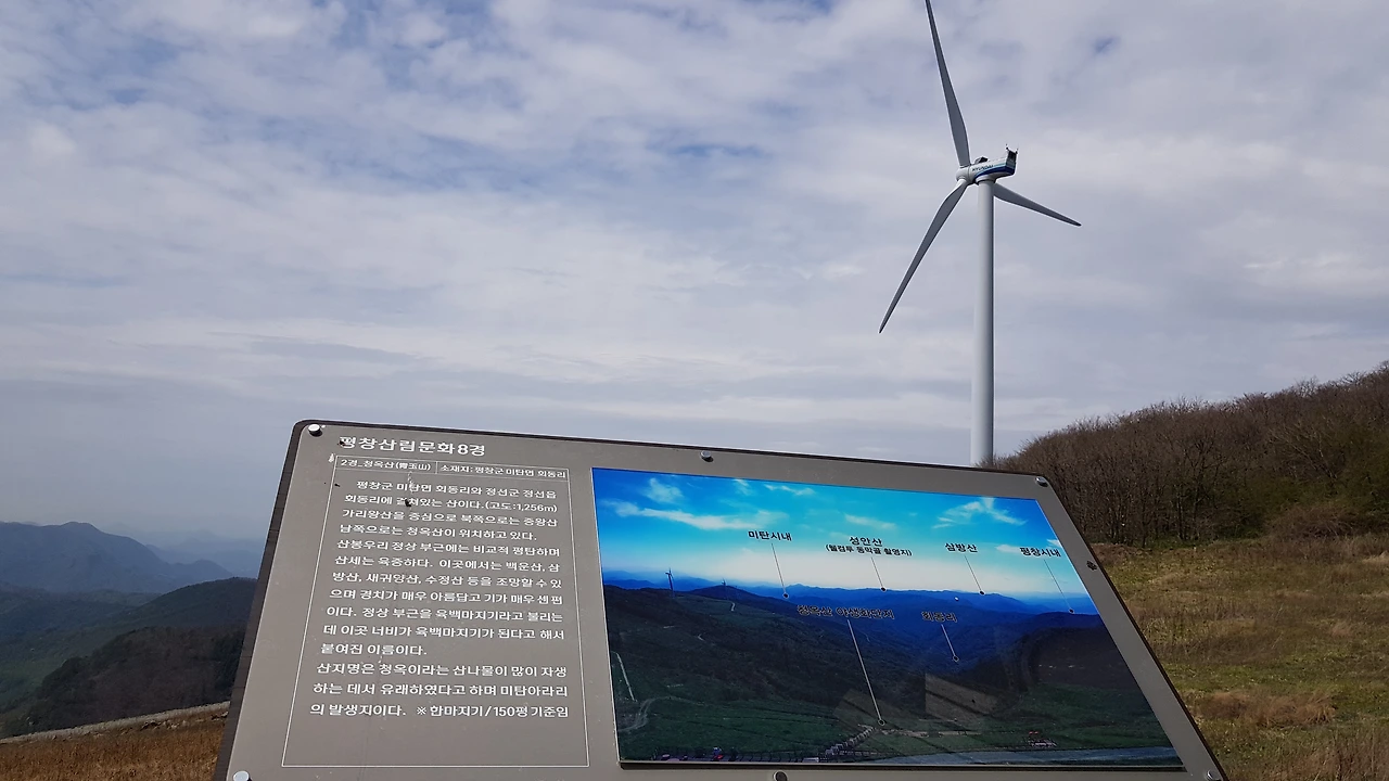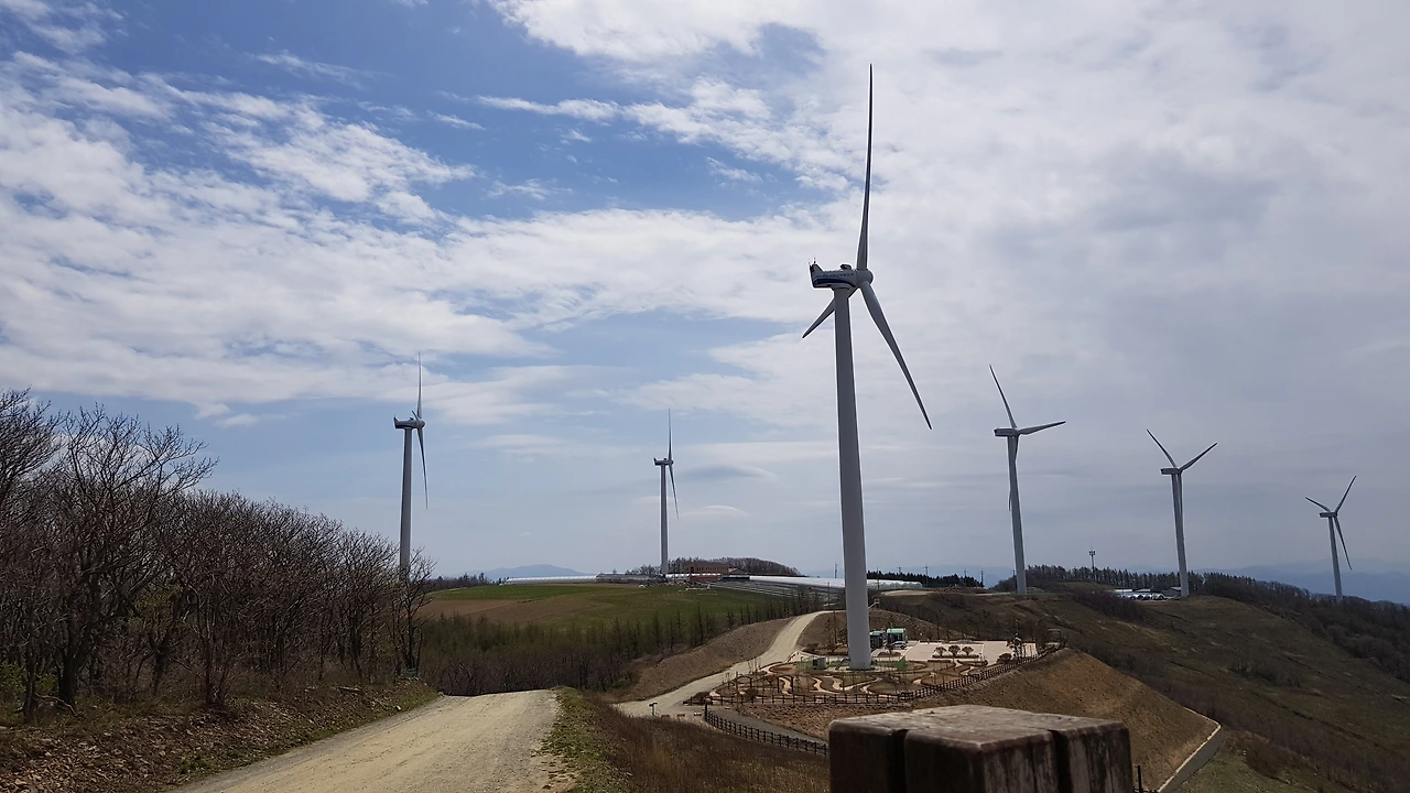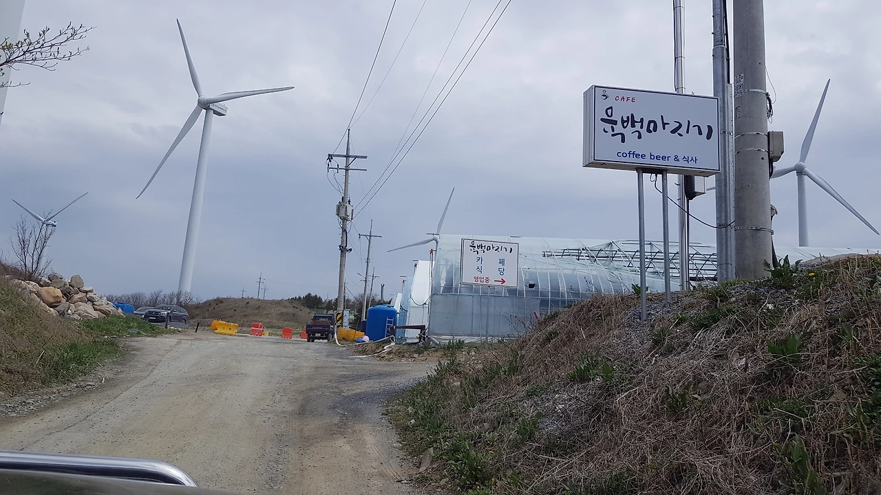 소나무 숲을 지나 하얀 피부를 자랑하는 자작나무 숲도 지나고 청옥산 중턱의 작은 마을도 지나 산 정상을 향해 오름은 계속되었는데 어느 시점이 오자 도로는 비포장으로 변했고 눈에 들어오는 풍력 발전기의 우람한 모습이 위협감을 주기도 했다
