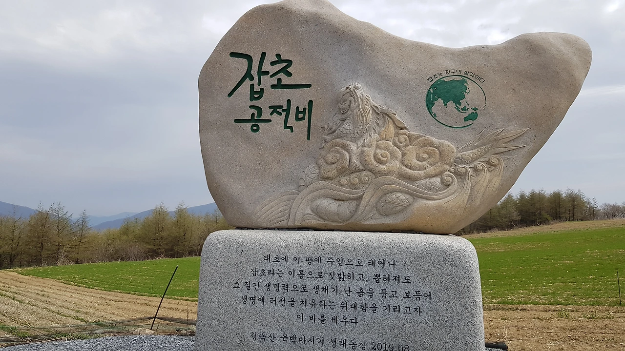 공원 앞쪽에 잡초 공적비가 커다랗게 있었는데 잡초 공적비라는 생소한 단어에 잠시 생각에 잠겼다