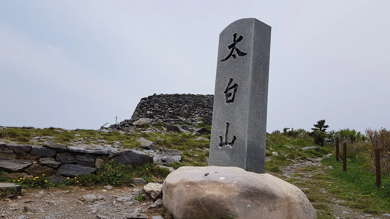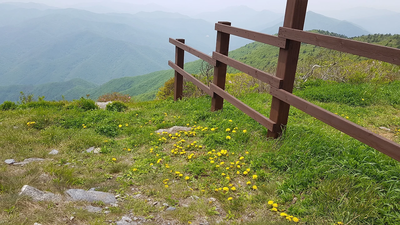 천재단 옆에는 태백산의 돌비가 우뚝 세워져 있어 이곳이 태백산 정상임을 알리고 있었으며 천재단 옆의 바닥에는 샛노란 민들레가 예쁘게 피어 저 너머의 산들을 내려다보며 더 높은 곳에 피었다고 우쭐대는 것 같은 생각에 쿡 혼자 웃음이 났다