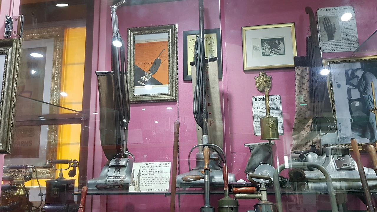 발전해가는 과정을 볼 수 있는 여러 형태의 축음기를 보며 놀람도 잠시 전화기의 여러 버전과 세탁기와 심지어 청소기는 그가 발명한 당시의 모습이 지금도 비슷하게 존재하고 있었으며 금전 등록기와 타자기, 여러 가지의 전구들,트리 장식 전구, 자동 복사기, 선풍기. 에디슨의 자동차, 전압 테스터기, 전기 모터 등등 너무 않은 것들을 발명해서 차라리 에디슨이 만들지 않은 것 찾기가 더 빠르겠다는 얘기를 하며 전시장을 돌아보았다