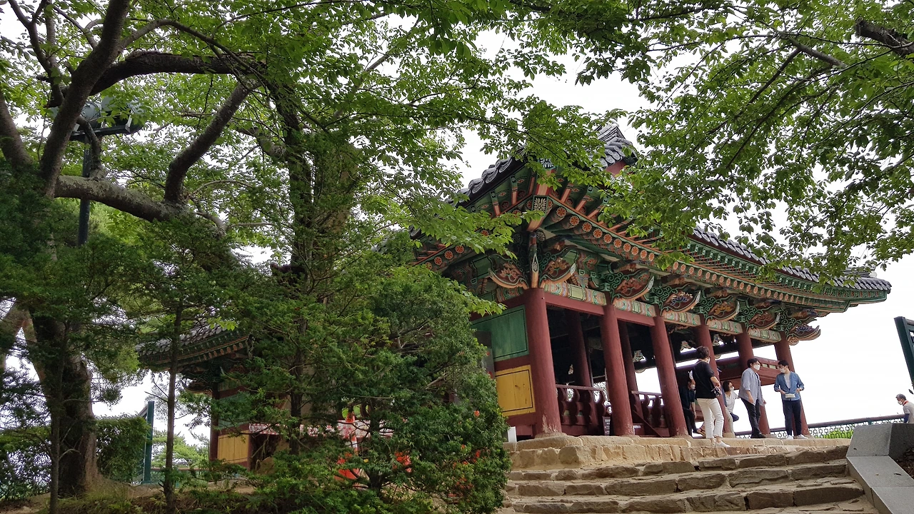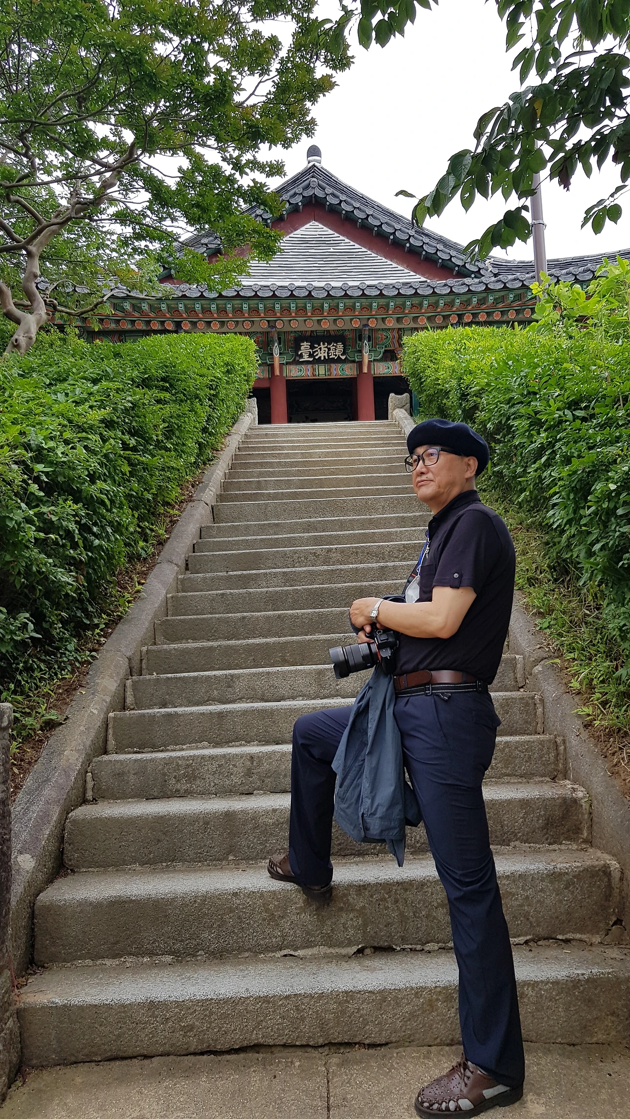 소나무에 감탄하며 오르는 길을 돌아 경포대 앞 계단 앞에 서서 옛 추억을 회상해 본다