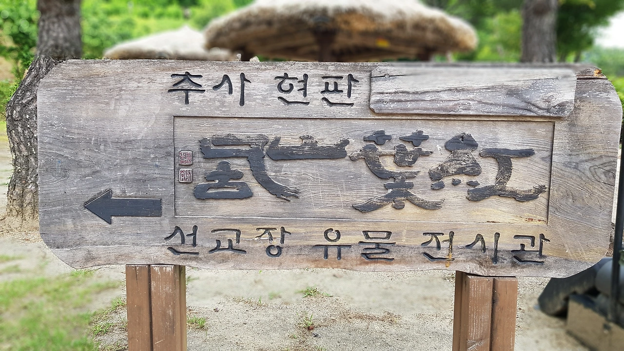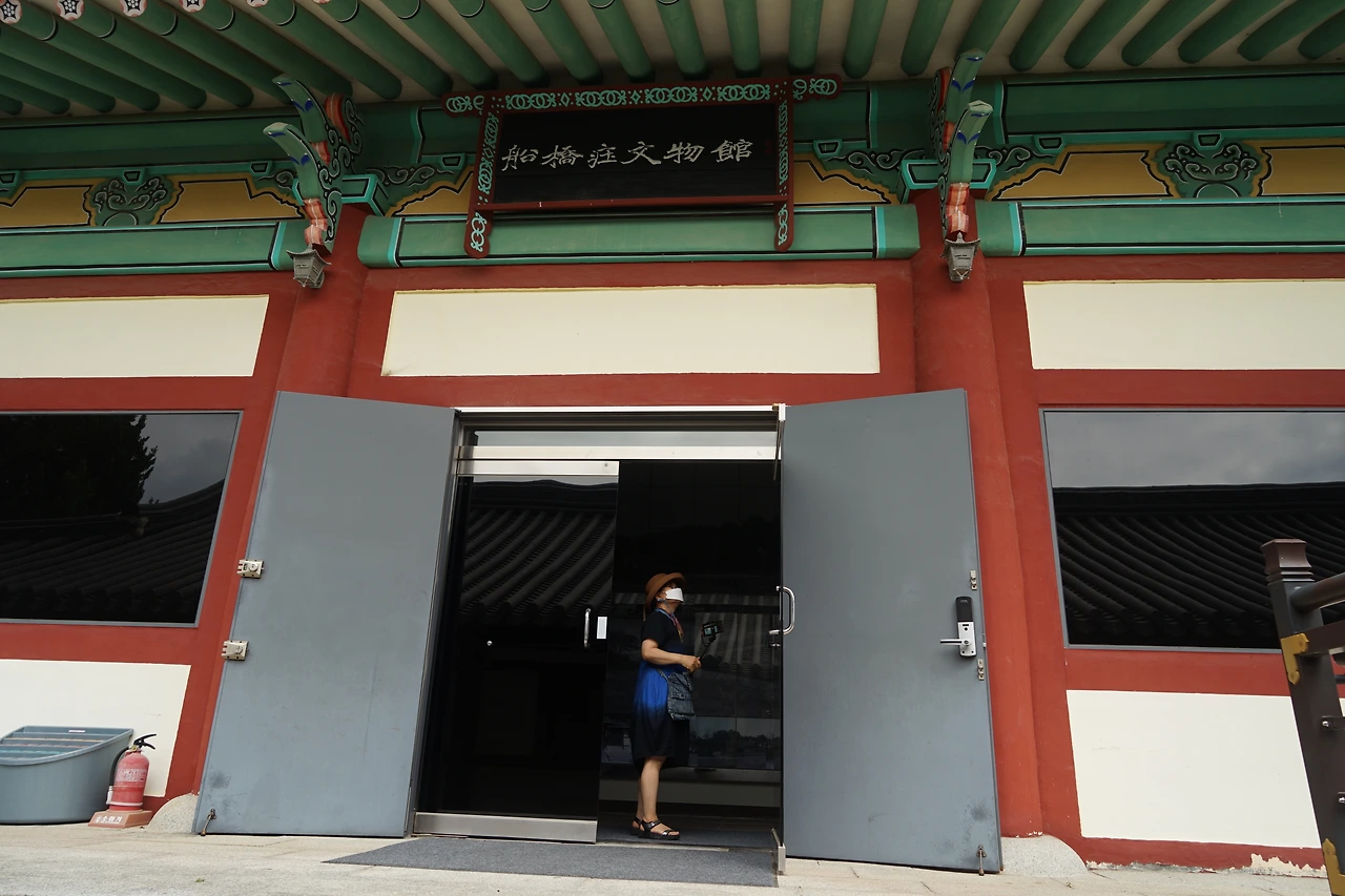 선교장 입구 왼쪽 화단가에 추사 김정희 님이 쓴 나무 현판으로 선교장 가는 길 안내판이 서 있어 화살표를 따라 들어가니 입구 쪽 건물이 유물 전시관이었다