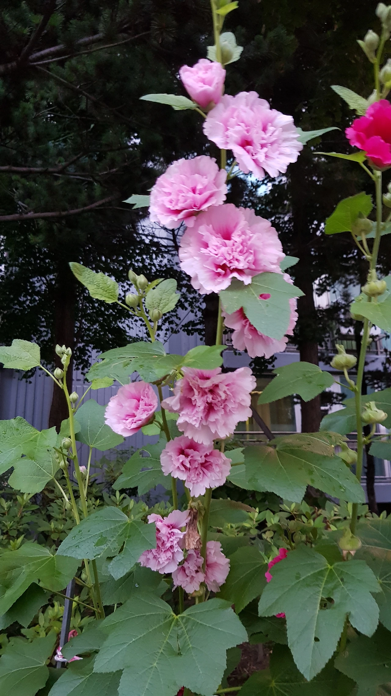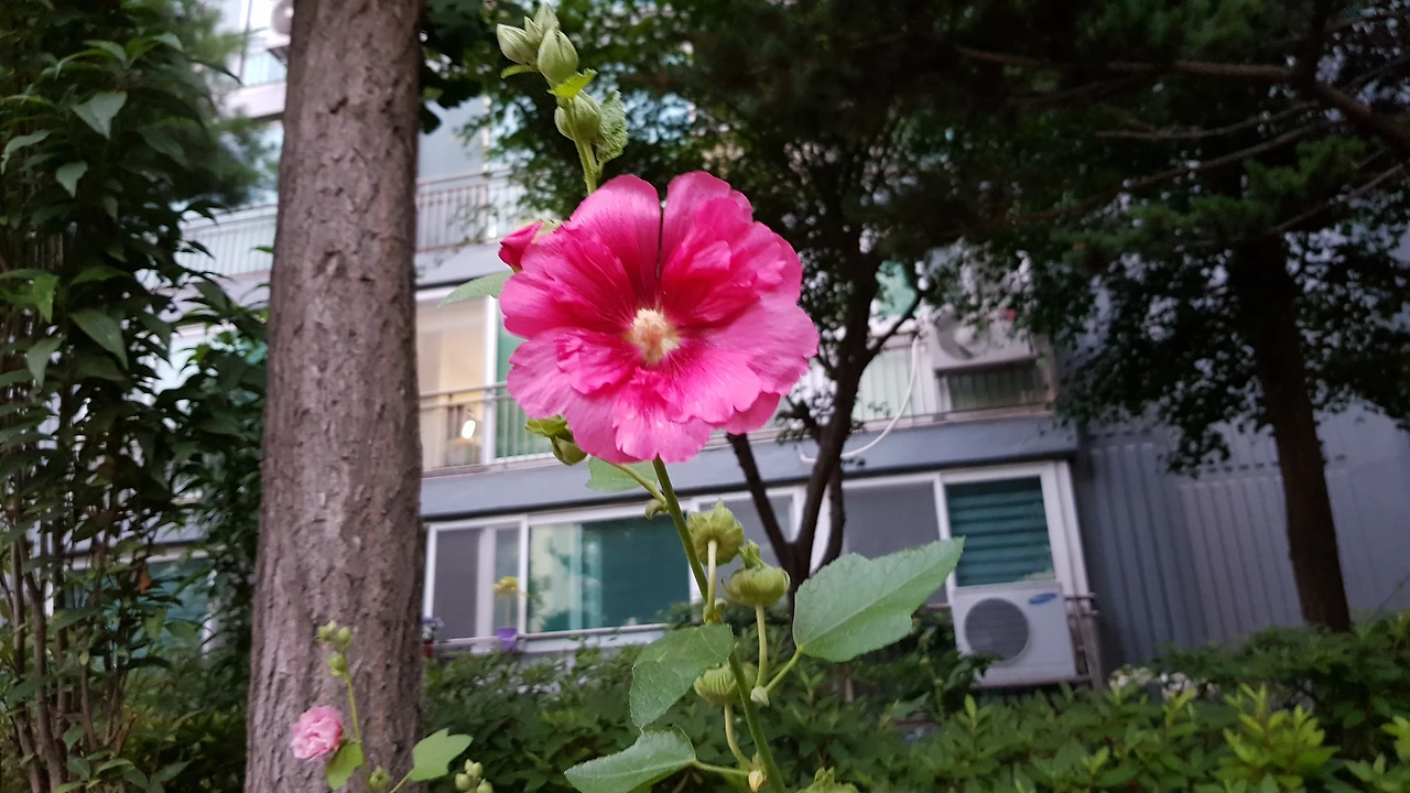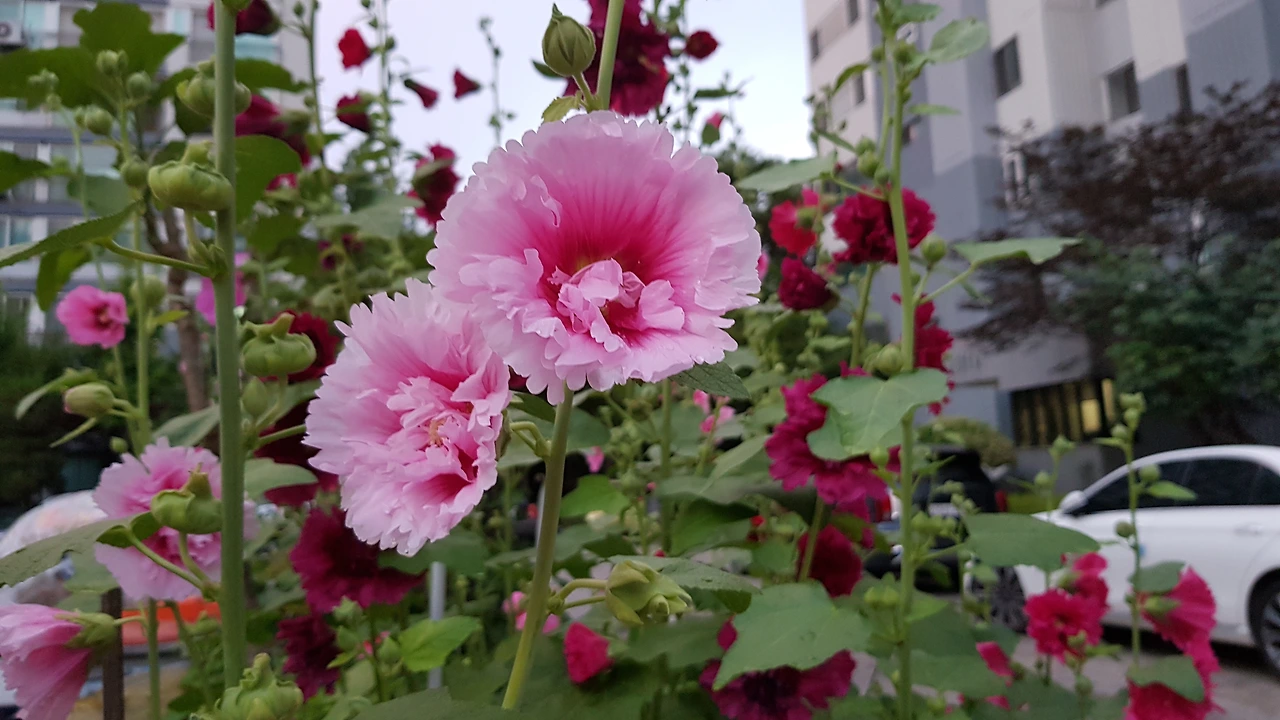 아파트 화단에 접씨꽃 활짝