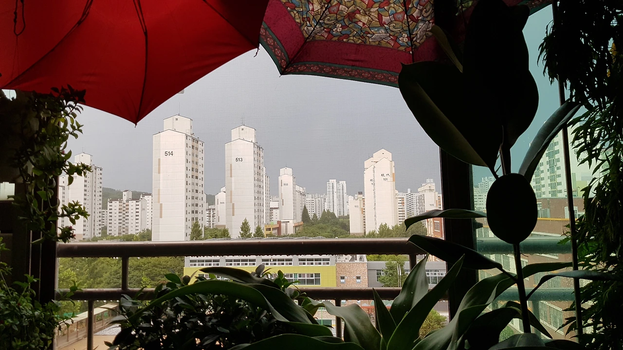 힘차게 비질하는 씻김 빗소리에