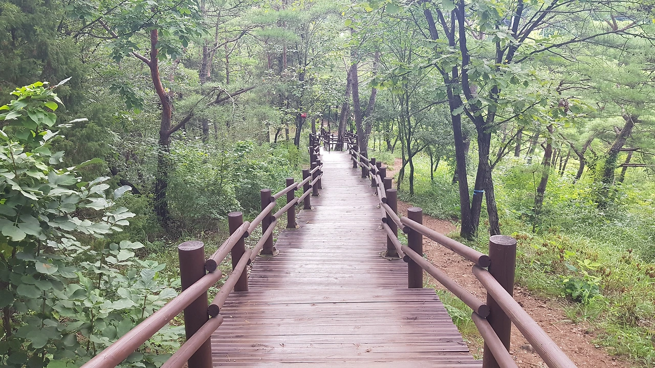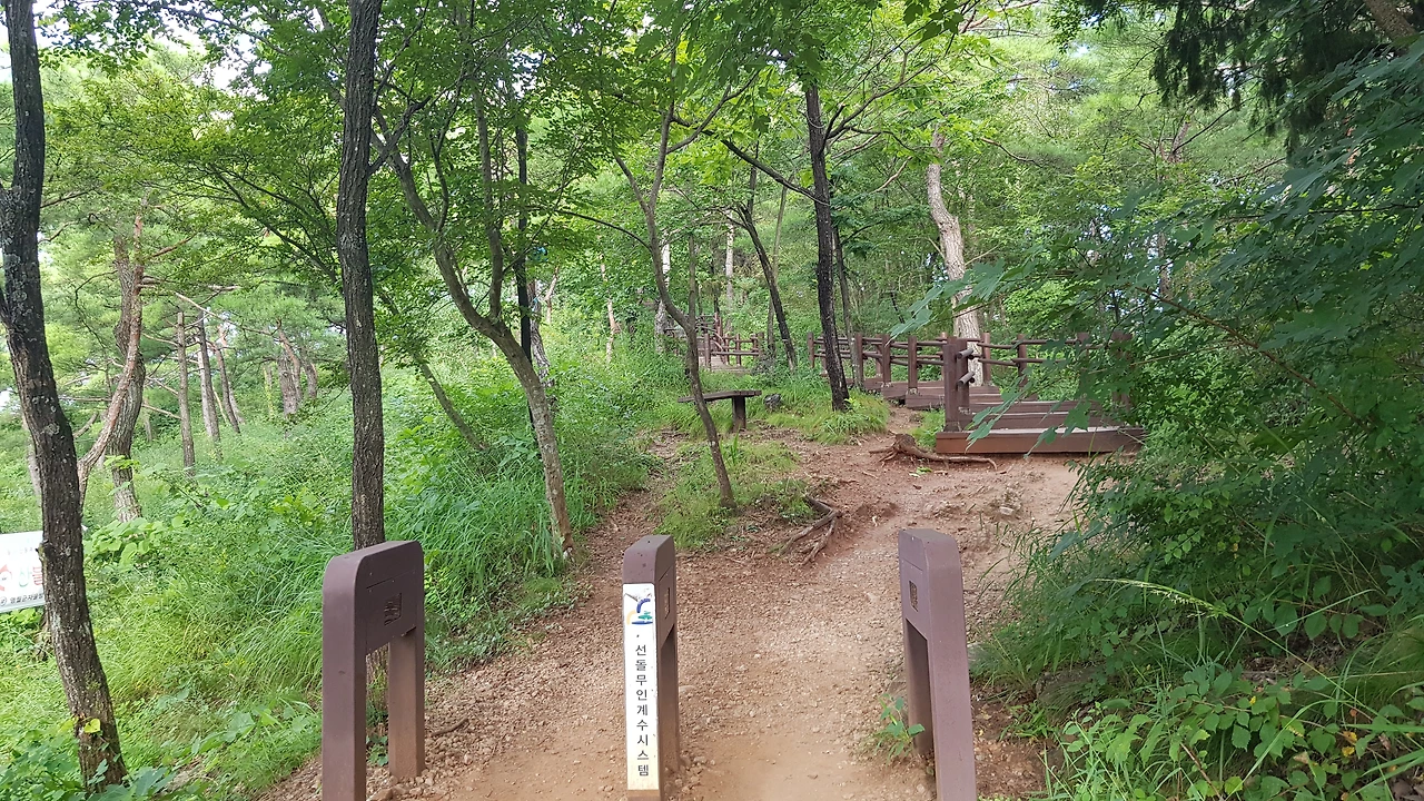 우리는 입구로부터 100여 m 떨어진 곳에 있는 선돌을 보기 위해 입구로 들어섰는데 예전과 많이 달라진 숲길의 나무데크를 지나