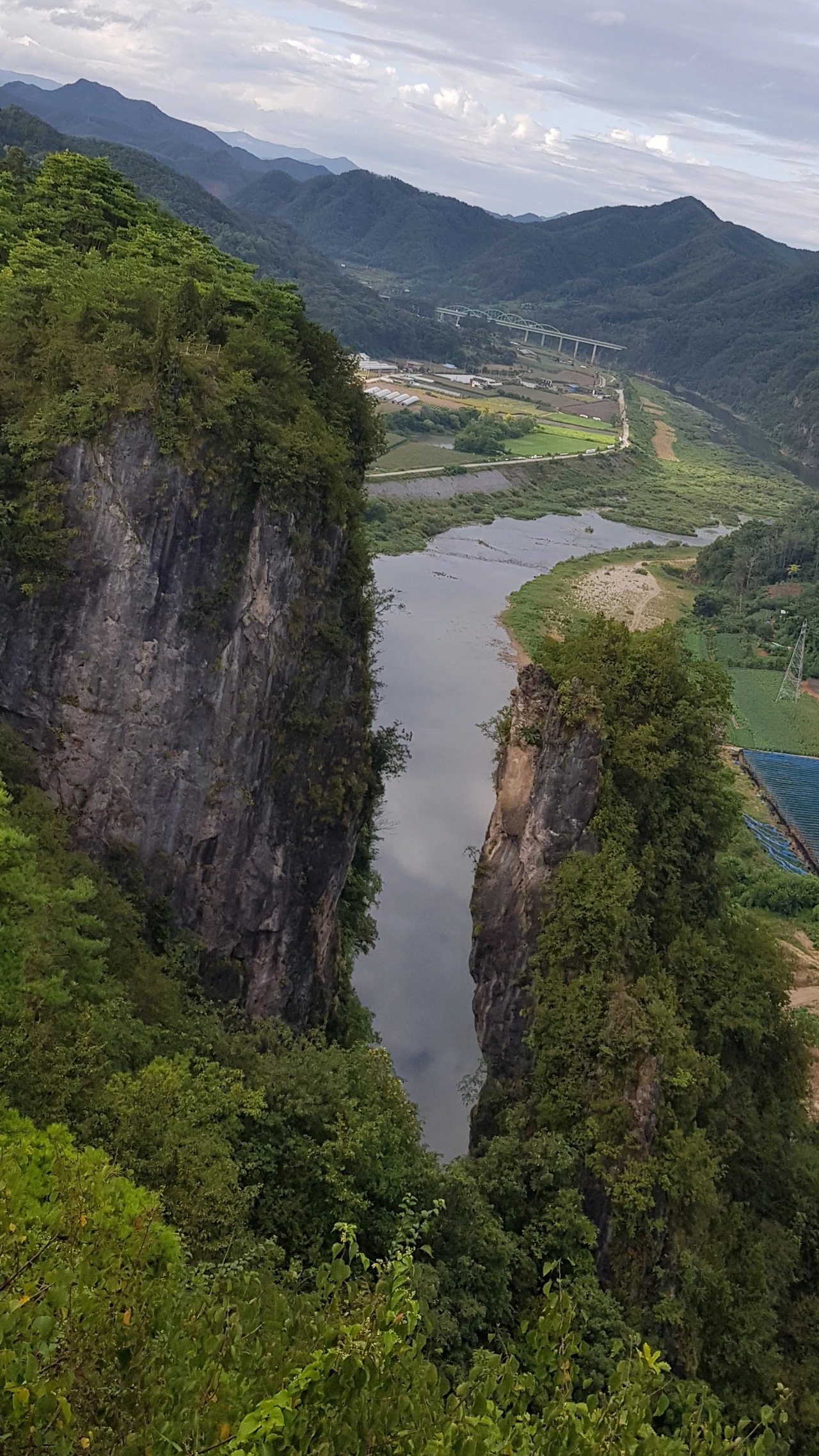 층암절벽과 강가에 나무가 자라 가려서인지 예전보다 키가 작아진 듯 보이는 듯도 하다
