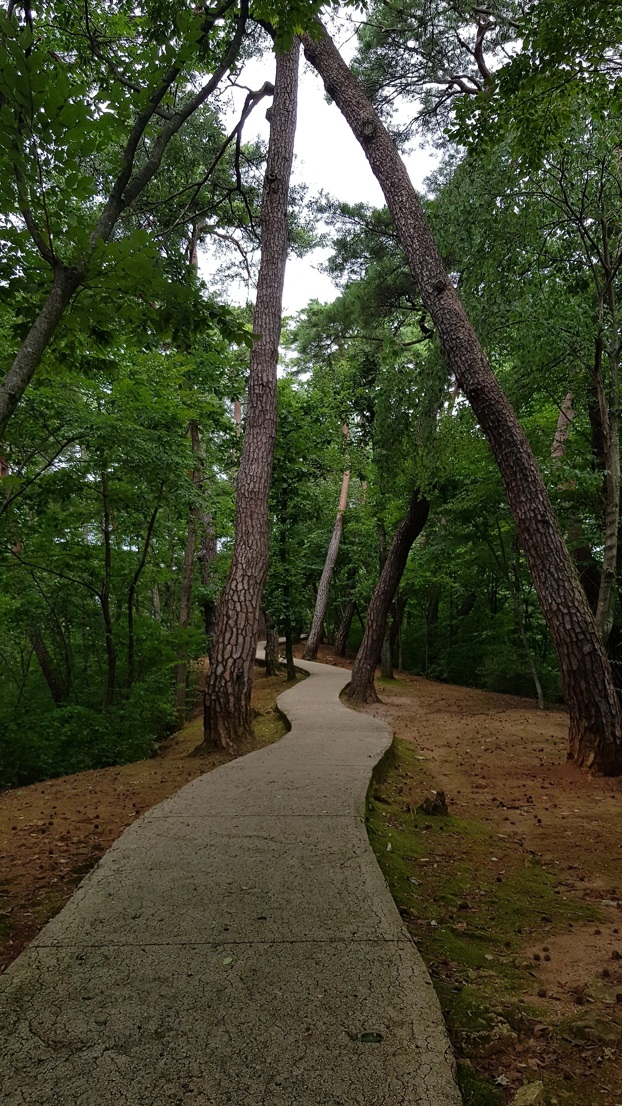 마당을 가로질러 계단에 릉 오르는 길 안내가 있어 오르니 소나무 숲 사이로 구불구불 포장된 길이 나왔다
