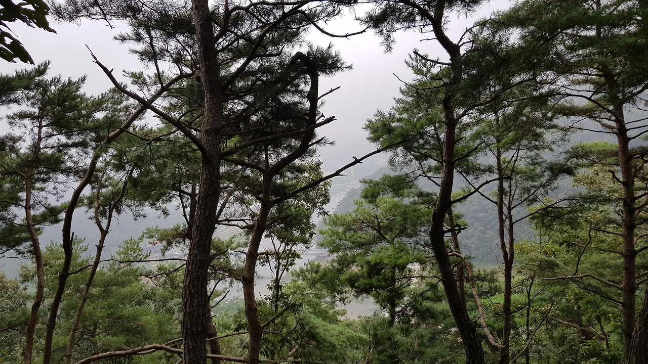 산 능선을 타고 걸쳐있는 파란 출렁다리와 저 밑에 흐르는 섬강의 절경을 더욱 멋스럽게 눈에 넣어주는 데크 옆 멋진 소나무의 자태에 이리저리 둘러보아도 너무도 멋진 풍경에 감탄이 절로 나왔다