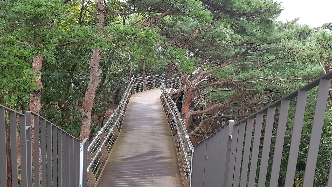 계단의 차이는 낮고 좀 힘들다 싶으면 쉬어가는 긴 데크에 의자를 설치해서 산을 오르며 내려다보는 멋진 풍경이 피로함을 시원하게 잊게 해 주며 다시 오를 수 있도록 잘 배치되어 있어 감사함으로 즐겁게 오를 수 있었다